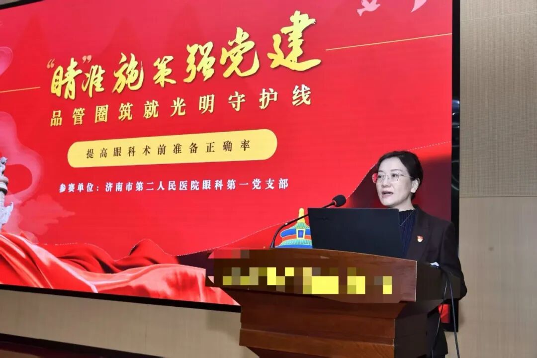 本届大赛竞争激烈,共有来自全省90多家医疗卫生单位报名参赛。经严格初评,62家单位进入现场决赛环节。济南市眼科医院(市二院)眼科第一党支部报送的《睛准施策强党建,品管圈筑就光明守护线——提高眼科术前准备正确率》凭借鲜明的党建特色、严谨的质量管理方法、扎实的临床实践数据和显著的改善成效,在众多优秀项目中脱颖而出,获得佳绩。