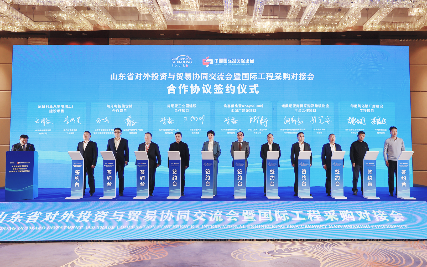 活动现场,省商务厅与中国国际投资促进会签订战略合作协议;中国(山东)自由贸易试验区济南片区(山海经出海综合服务港)与6家企业现场签署协同发展合作协议;相关企业与合作伙伴签署境外合作区共建、装备物资采购、工程建设等合作协议。