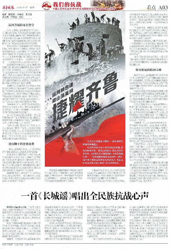 为铭记这一伟大历史时刻,齐鲁晚报·齐鲁壹点特别策划推出“我们的抗战”主题报道,挖掘红色基因的深厚底蕴,讲述时代发展的蜕变历程,让人们在铭记历史中汲取前行的力量。