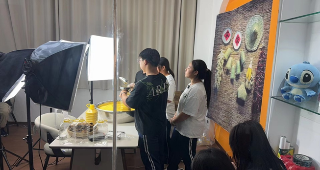 为强化实践教学,学校近年来投入建设了5个电商直播室、2个电商综合实训室和1个电商运营中心,打造集教学、实训、服务于一体的公共平台。学生以轮值方式参与运营,为农户、合作社、企业提供线上销售服务。