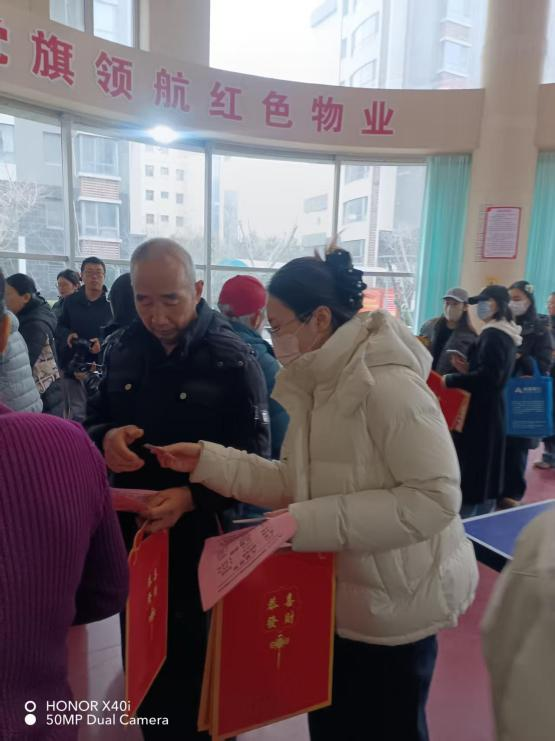 活动现场暖意融融,春联与福字寓意美好,居民们有序排队领取,脸上洋溢着喜悦。支行工作人员趁势开展金融宣教,结合典型案例,用通俗语言讲解电信网络诈骗防范、反非法集资、存款保险等核心知识,重点提醒老年群体警惕“养老投资骗局”“假冒客服转账”等常见套路,手把手指导居民守护财产安全。