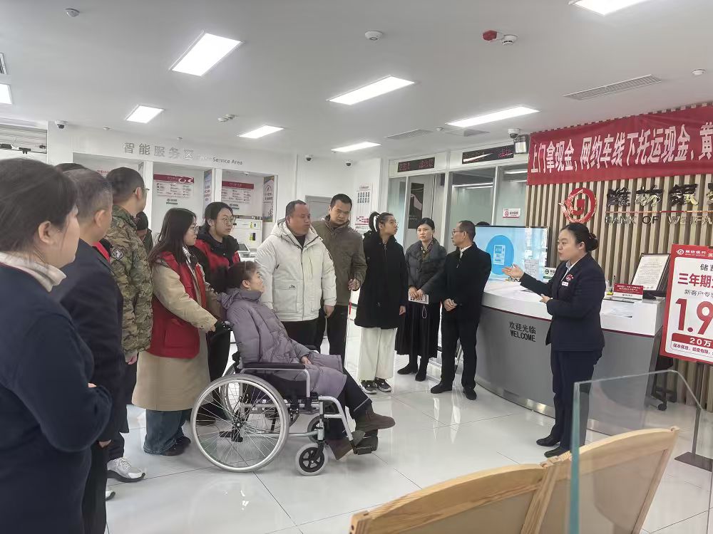 为搭建残健共融交流平台,强化全社会对残疾人无障碍需求的关注,12月26日,滨城区残疾人联合会、滨城区金融服务中心开展残疾人无障碍体验活动,参观潍坊银行滨州滨北支行无障碍设施配置,滨北支行以贴心设施、专业服务与真诚倾听,为残友群体搭建便捷、温暖的金融服务桥梁。