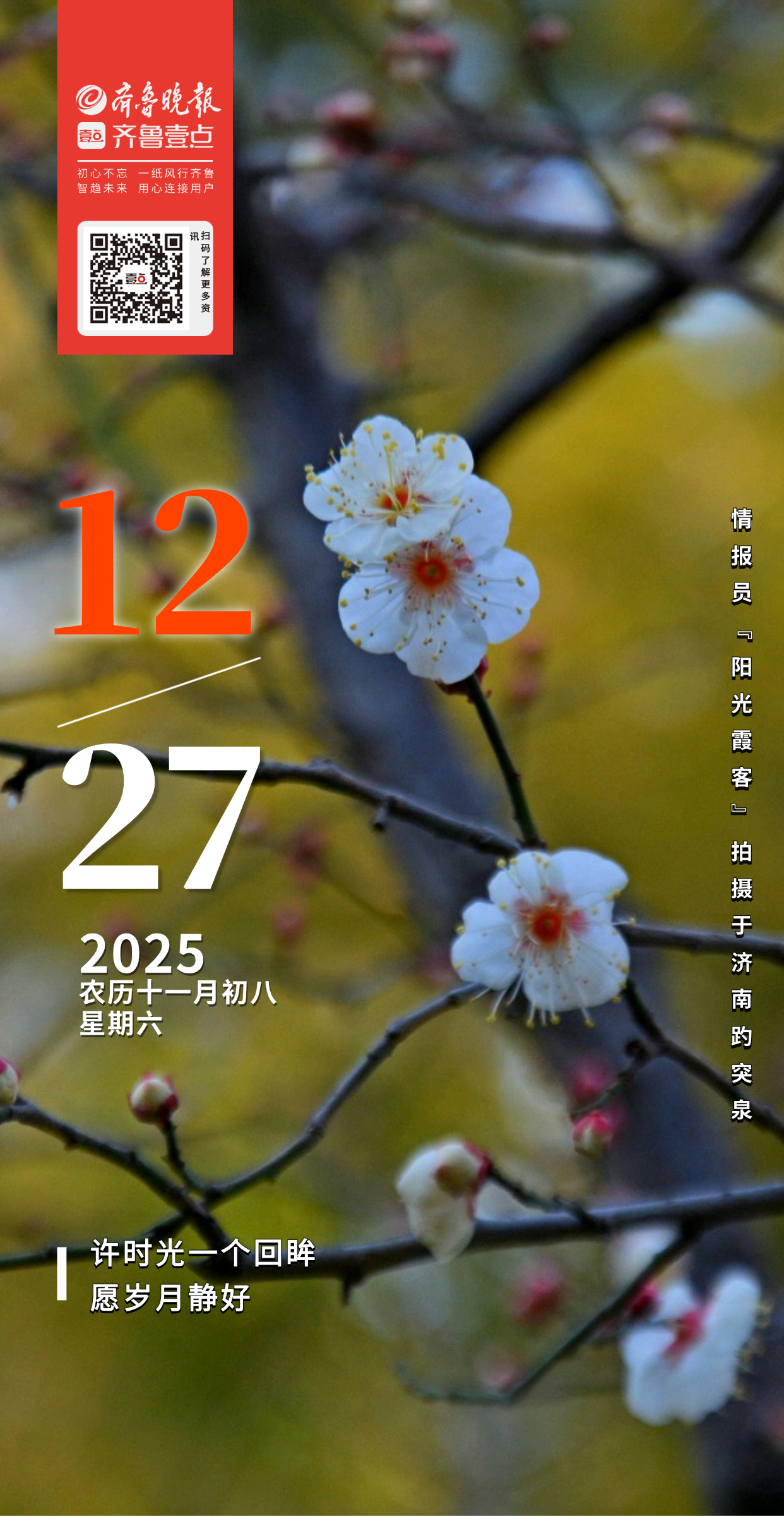 【参与方式】:通过“齐鲁壹点”APP,在情报站参与话题#壹点日历摄影作品征集,红包好礼等你#发送作品及详细介绍(1)拍摄地点(2)拍摄场景(3)拍摄月份日期(4)作品说明即可。