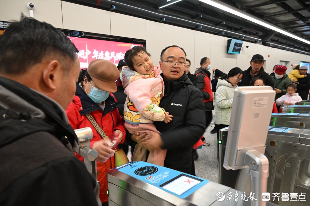 12月27日10时许,随着济南地铁6号线山大南路东口站卷帘门徐徐开启,市民以百米冲刺的速度冲进地铁站,只为体验期盼已久的于今日开通的6号线首班地铁。(齐鲁晚报·齐鲁壹点记者张中)