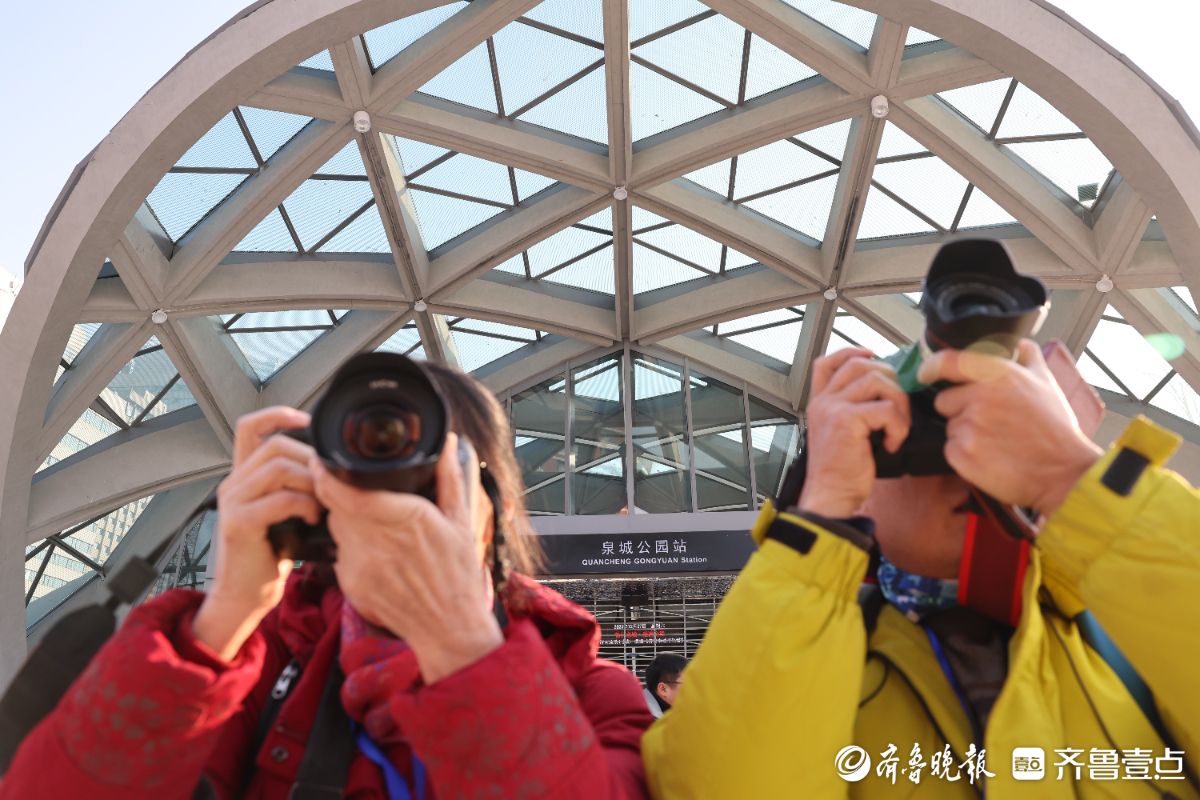 12月27日,济南地铁4号线、6号线东段、8号线一期正式开通。当日,来自山东省摄影家协会、济南市摄影家协会的近50名摄影家齐聚泉城公园站,用镜头记录这一历史性时刻。地铁正式开通后,他们分头行动,穿梭在地铁站内外,捕捉市民的喜悦表情、地铁站内的繁忙景象以及列车运行的瞬间,每一幅作品都定格了济南地铁发展的新里程碑,为城市交通发展留下生动的影像记忆。 (齐鲁晚报·齐鲁壹点记者 王鑫)