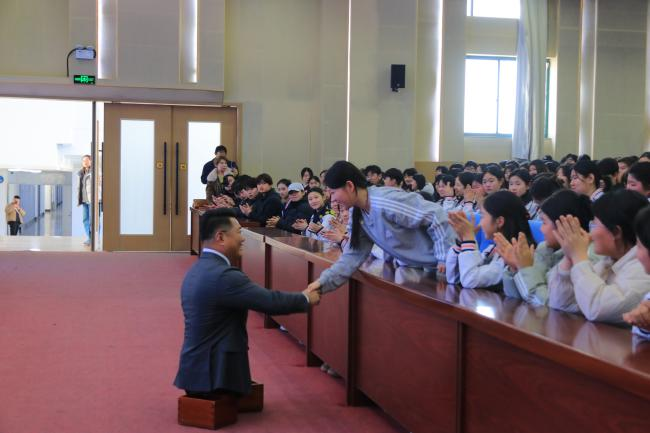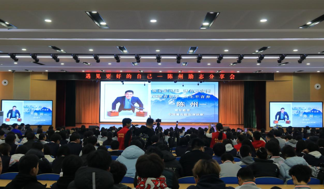 演讲过程中,陈州紧紧围绕“遇见更好的自己”这一主题,用朴实无华却又幽默风趣、饱含力量的语言,将自己的人生故事娓娓道来。年少时那场突如其来的意外,无情地夺走了他的双腿,但他从未向命运低头屈服。为了生存,他在街头学唱,用歌声传递着对生活的渴望与热爱;凭借着顽强的毅力和不屈的精神,他靠着双手“攀登”五岳,征服了一座又一座常人眼中的高峰;从一无所有到成为激励无数人的励志榜样,他用自己的亲身经历,生动诠释了梦想、坚持、毅力与责任的强大力量。他勉励在场学子:“腿走不完的路,用手走完;手走不完的路,用心走完。”这番话语,如同一束强光,直抵人心,引发了全场强烈的共鸣,掌声一次次响起。