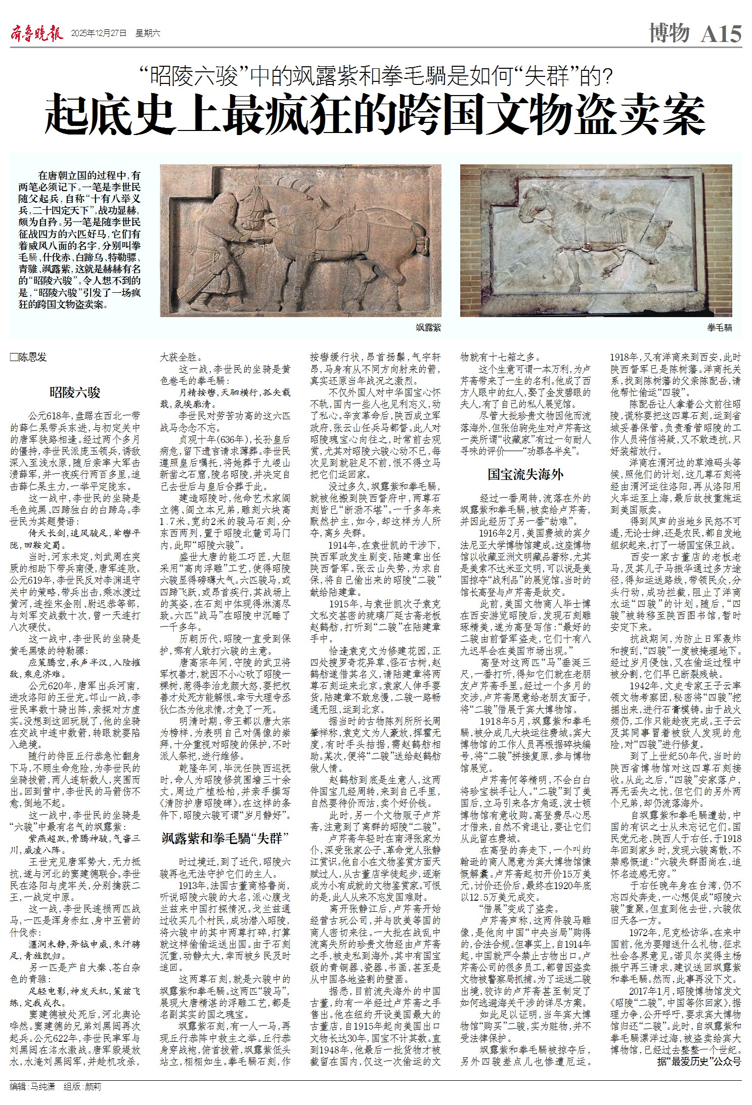 此时,另一个文物贩子卢芹斋,注意到了离群的昭陵“二骏”。