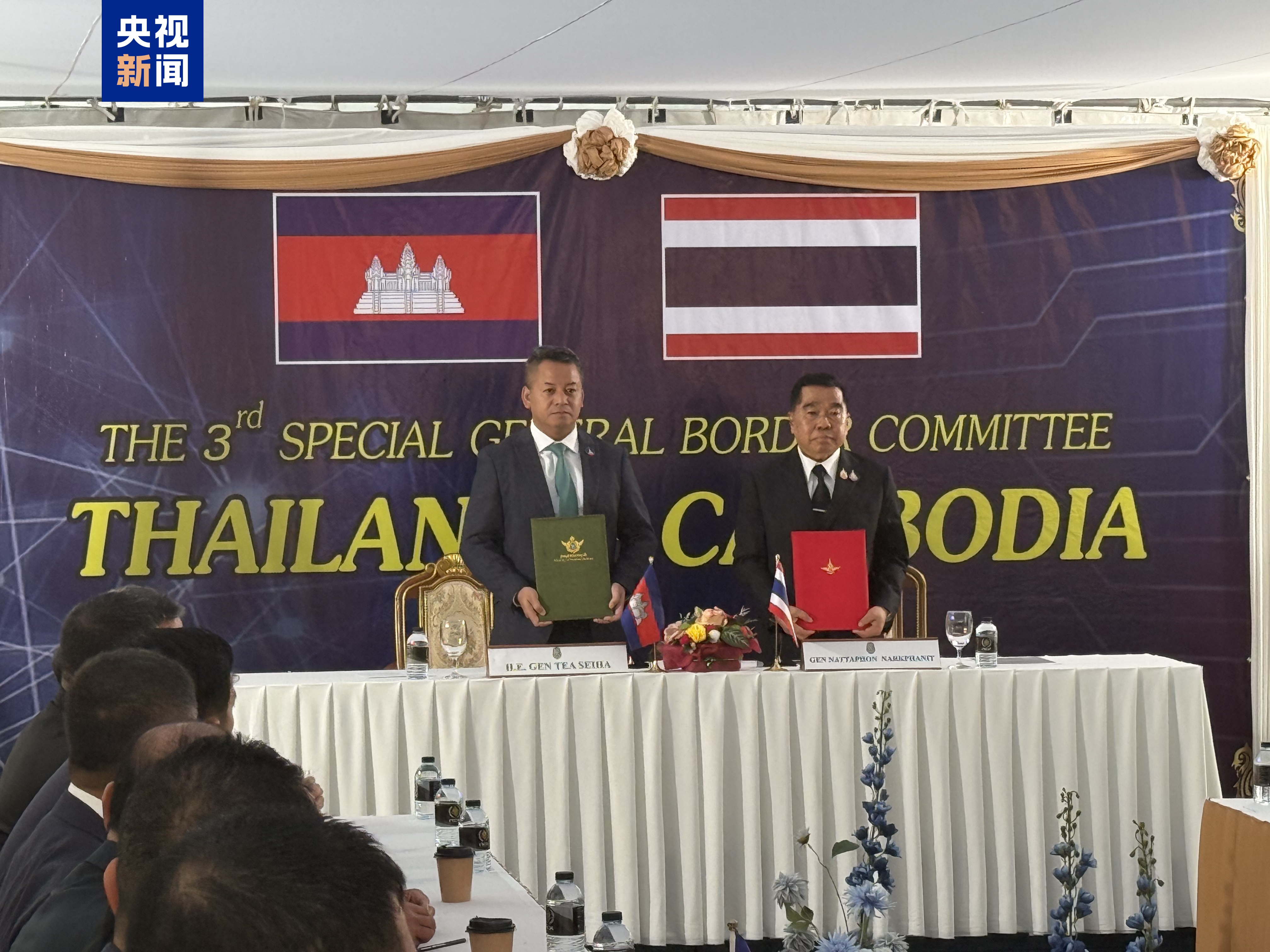 柬埔寨国防部通报称,柬埔寨-泰国边界总委员会第三次特别会议通过并签署了《柬埔寨-泰国边界总委员会第三次特别会议联合声明》,重申双方坚定致力于全面落实停火协议,并为柬埔寨-泰国边境沿线人民寻求和平、稳定与安全。