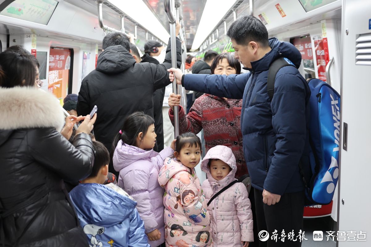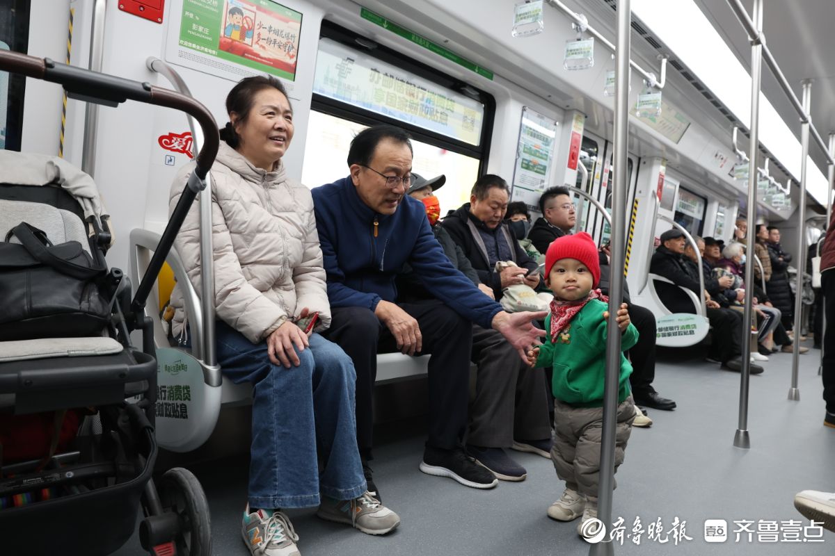 12月27日,济南地铁4号线正式开通。当日,不少小朋友和老人乘车打卡体验。孩子们好奇地探索新奇的地铁环境,老人们则在子女陪伴下感受出行新便利。列车上座无虚席,市民们热情高涨,新线路的开通,不仅为市民出行带来便捷,也增添了生活乐趣。(齐鲁晚报·齐鲁壹点王鑫)