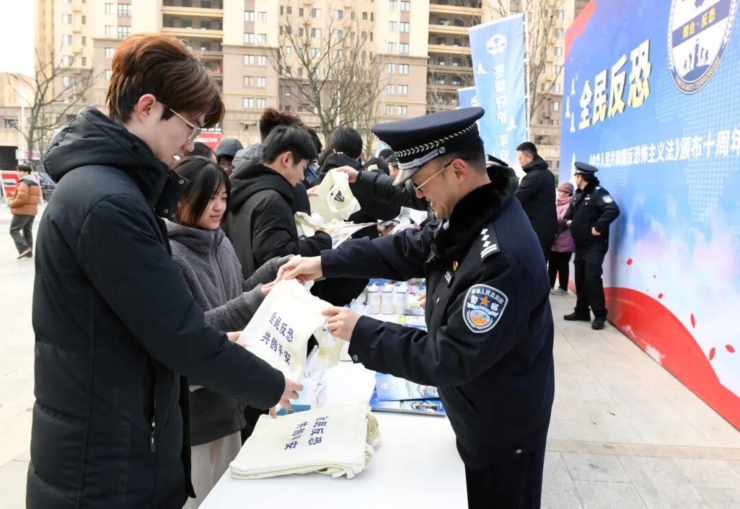 集中宣传区汇聚了市委统战部、市公安局、市应急管理局、市国家安全局、市邮政管理局、市人民银行、高新公安分局等多个单位的业务骨干,通过发放宣传资料、现场讲解、互动问答等形式,向群众普及反恐知识,解读反恐怖法律的重要条款,让大家深刻认识到反恐工作与每个人的生活息息相关,以及在日常如何防范恐怖主义威胁。