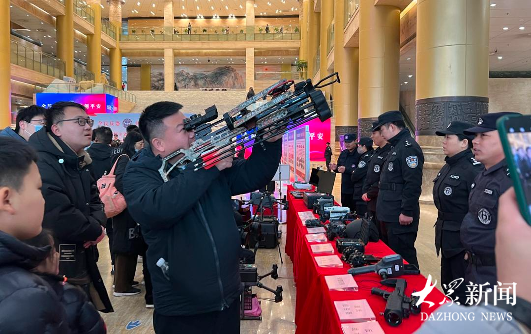 在反恐装备展示区还有反恐战术弩、激光炫目器、地投机器人等多种警用装备引发关注,大家纷纷了解相关装备在反恐中的应用。现场观众表示,通过这次活动了解许多反恐知识,还学到了自救互救技能。