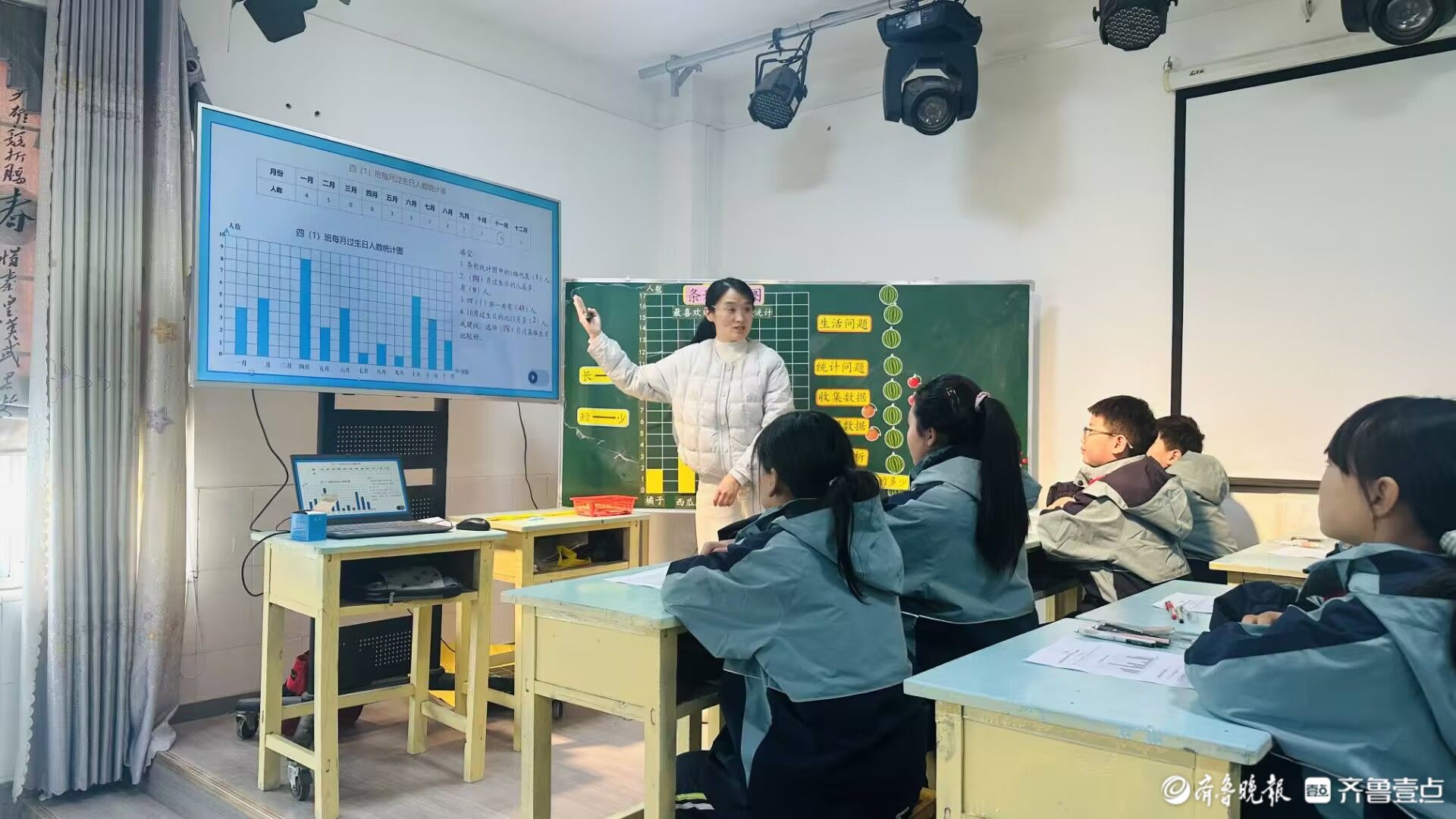 活动伊始,工作室成员王红率先带来四年级《条形统计图》示范课。王红以清晰的教学思路、生动的教学方法,将抽象的统计知识转化为直观易懂的内容,有效降低了学习难度,助力学生在实践中掌握数据整理与分析的方法。随后,工作室成员李姗姗带来五年级《折线统计图》,她将数学知识与生活场景深度融合,引导学生观察折线起伏规律,既教会学生读取数据信息,更培养了其用数学眼光分析现实问题的能力,课堂互动氛围浓厚。