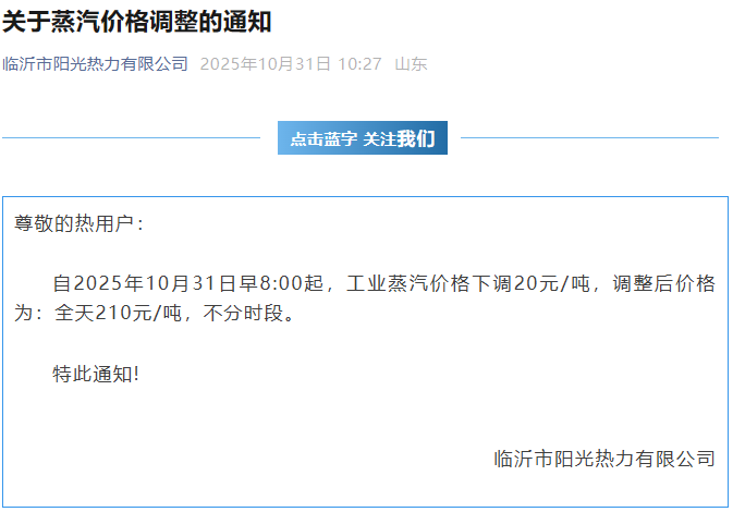 于是,4月22日,第一次下调工业蒸汽价格。5月12日,再次调整工业蒸汽价格。10月31日,第三次下调价格至210元/吨。经过三次调整,累计降价40元/吨,阳光热力公司工业蒸汽价格跻身全国燃煤热电联产热力要素供应优等行列。