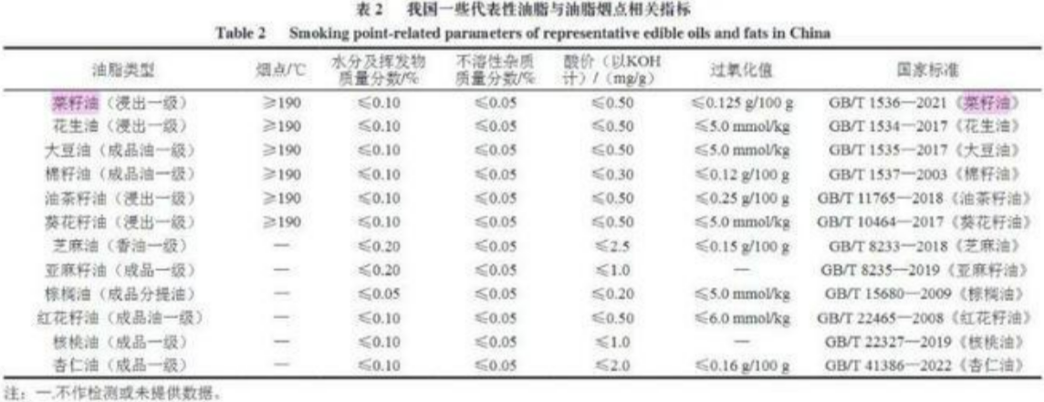 还有些研究提到,菜籽油的挥发性有机化合物(VOCs)致癌风险比花生油低;可可仁油、红花籽油、菜籽油和初榨橄榄油中,精炼菜籽油在180~220℃加热6小时,挥发性醛类释放量最低,性质相对稳定;葵花籽油、菜籽油、棕榈油中,无论烹饪方法和食物类型如何,葵花籽油释放醛类含量最高,而菜籽油和棕榈油的排放量相对较低。