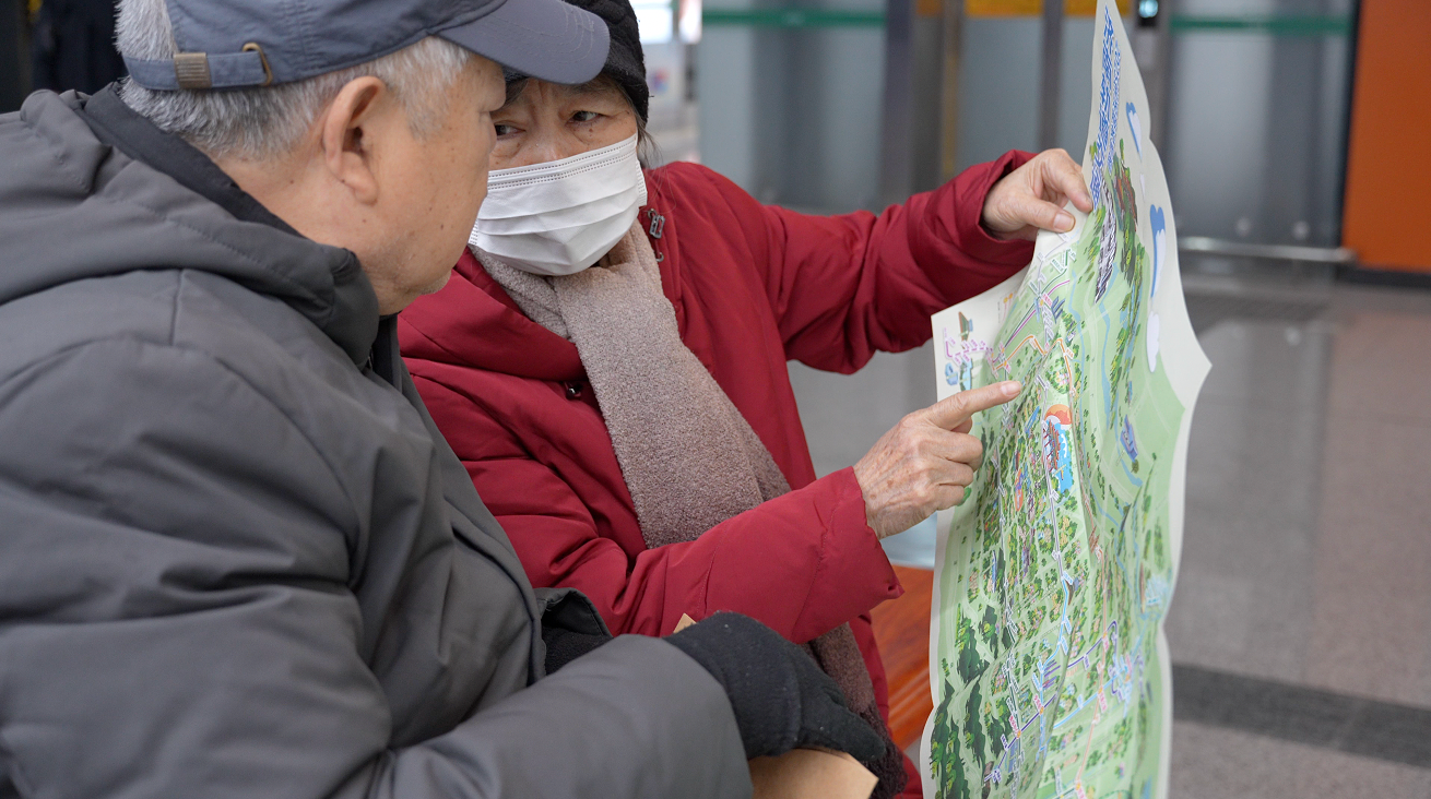 家住千佛山附近的一对老夫妻,一大早便赶过来体验新开的地铁4号线,老两口表示,一直很关注济南地铁的建设进度,以前出去游玩,去西客站要坐很长时间的公交,很慢也不方便,“盼了好多年,4号线终于通车了,今后我们去坐高铁坐飞机都非常便捷,这个服务地图画得也很形象,一下就能看明白该怎么坐车,从哪换乘,很适合我们。”