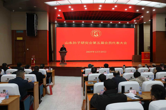2025年12月25日,在济南联勤宾馆会议大厅,山东孙子研究会第五届全体会员代表大会胜利召开。全省各地会员代表上百人参加了会议,中国孙子兵法研究会对此次大会发来了贺信,山东省社科联党组成员、副主席杨宗杰发表了热情洋溢的讲话,对第四届理事会的工作给予了充分的肯定。大会由副会长张卫东主持,孟斌代会长作第四届理事会工作报告,大会听取并审议了第四届理事会工作报告、第四届理事会财务工作报告、第四届理事会监事工作报告以及《章程》修改(草案)的说明,听取并审议会费标准和收取办法。采用无记名投票方式,选举产生新一届理事、常务理事、会长、副会长、秘书长、监事。孟斌当选山东孙子研究会第五届理事会会长。