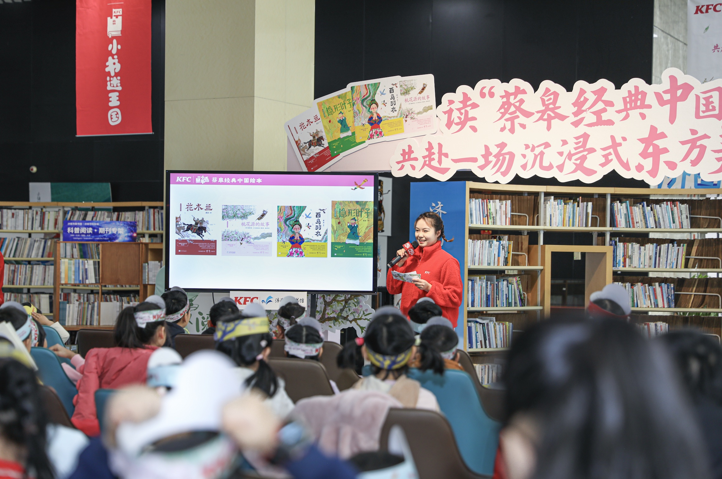 《桃花源记》描绘的世界到底有多美?古老的民间传说如何绽放新活力?12月27日,“读‘蔡皋经典中国绘本’,共赴一场沉浸式东方美学之旅”故事会在济南市图书馆举行,山东大学文化传播学院教师巩晓悦带领小读者,在蔡皋的《桃花源的故事》《花木兰》《百鸟羽衣》《隐形叶子》等作品中沉浸式体验传统文化的魅力。