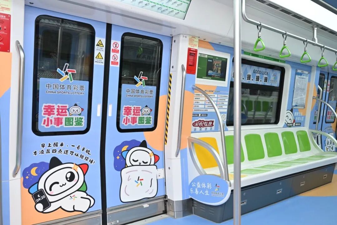 六节车厢自成天地,让每一段旅程都充满既寻常又别样的欢喜。体彩品牌主题车厢内,体彩元素与“乐小星”的萌态交相辉映,“公益体彩 乐善人生”的理念随列车前行,悄然在乘客心中播下公益的种子。责任彩票主题车厢中,设计吸睛的海报与“快乐购彩 理性投注”的醒目标语,让体育彩票的责任担当深入人心。公益金主题车厢里,化身运动达人的“乐小星”在体彩公益金支持的场馆内活力运动,以漫画形式生动诠释体育彩票“来之于民 用之于民”的发行宗旨,让乘客在会心一笑间感受公益的温暖力量。