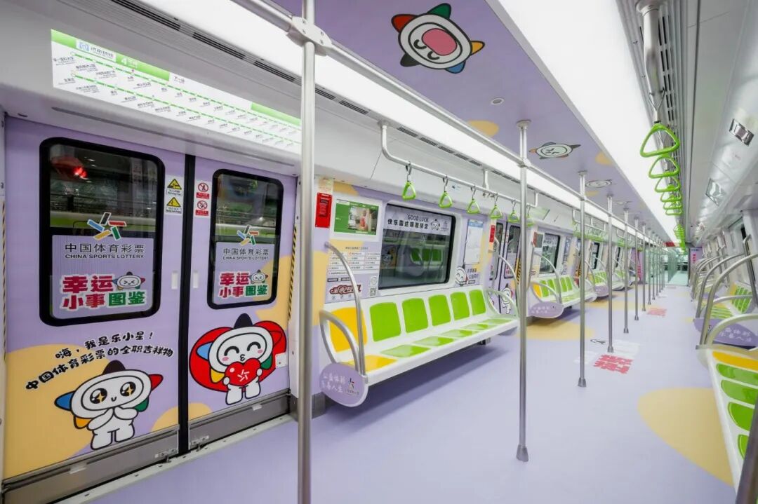 各车厢内,一幅幅由“乐小星”主演的“幸运小事图鉴”穿插其间,将彩票带来的小确幸融入日常。大乐透游戏主题车厢里,等待电影时随手买的大乐透彩票让生活有了一份对美好的期待;顶呱刮游戏主题车厢内,“乐小星”与好友体验顶呱刮,用中奖奖金共享一顿热气腾腾的火锅;竞猜游戏主题车厢中,“乐小星”化身球迷,为自己支持的球队胜利欢呼……这些温暖的场景,戳中了人们对“幸运”的共同向往,让公众在共鸣中自然接触体育彩票,传递了公益体彩热爱生活、期待美好的品牌理念。
