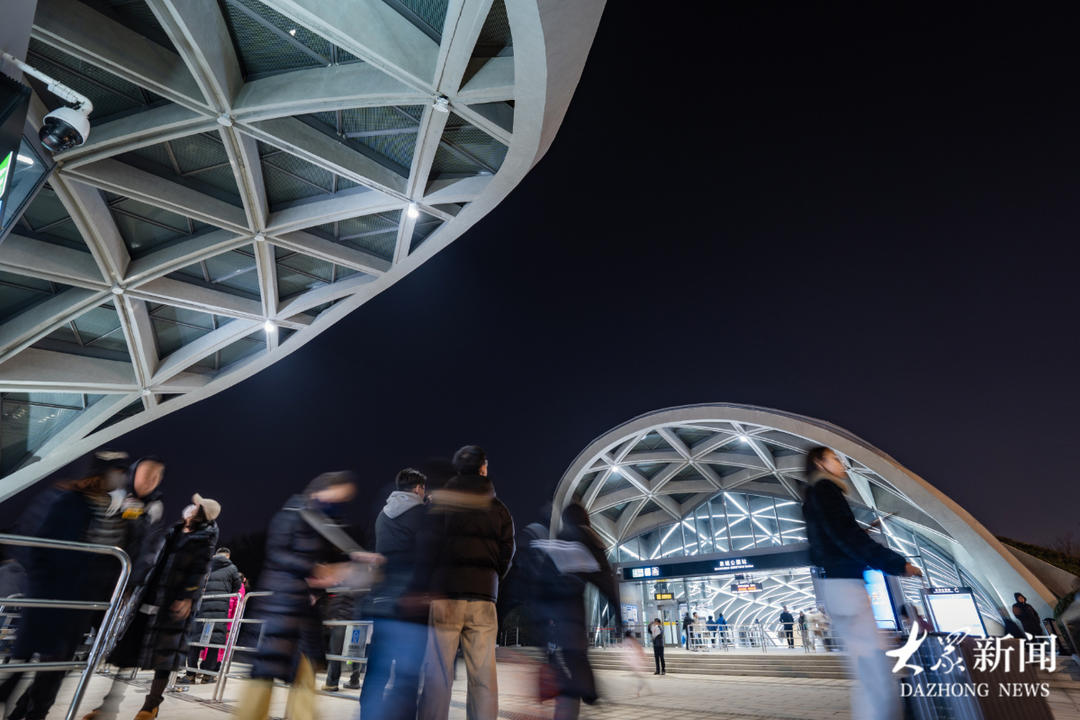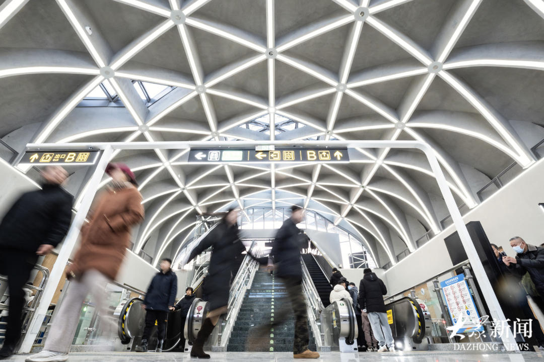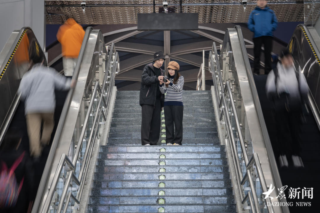 12月27日,济南轨道交通4号线通车运行。据了解,4号线泉城公园站是距离趵突泉景区最近的车站,也是4号线全线唯一的半地下车站。为避让泉水补给通道,泉城公园站整体抬升6米,最大埋深控制在15米以内。因其为泉抬升,也因其造型独特,泉城公园站成为4号线最热门的车站之一,吸引了不少人前来乘车、打卡。记者在4号线开通首日来到泉城公园站,用镜头记录下这座“不一样”的车站。