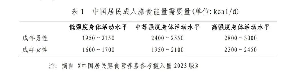 控制总能量摄入,可基于不同人群每天的能量需要量(如下表),推荐每日能量摄入平均降低30%~50%或降低500~1000kcal,或推荐每日能量摄入男性1200~1500kcal、女性1000~1200kcal的限能量平衡膳食。