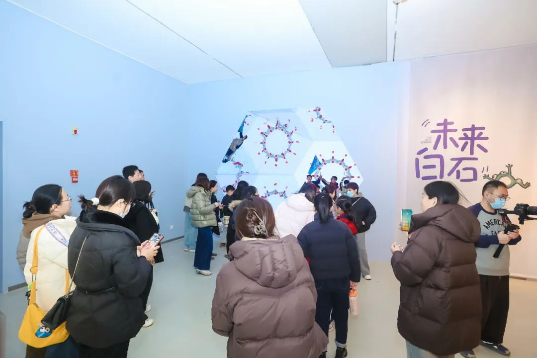除了精彩的作品陈列,展览还深度融合数字技术与非遗创意,打造出多重沉浸式体验空间。在“万竹山居”“五出五归”“一花一世界”等数字光影展厅中,观众可漫步于齐白石的故乡星斗塘,跟随其游历足迹,感受其“师古人、师造化”的艺术真谛,深入了解他艺术人生的重要履历。展厅内还设有“白石书屋”“白石来信”“未来白石”等互动装置,借助AR技术、万花筒艺术装置等形式,让观众从“旁观者”转变为“参与者”,走进了齐白石的创作天地,沉浸式看名画在眼前“活起来”,完成与艺术大师跨时空、跨媒介的对话。