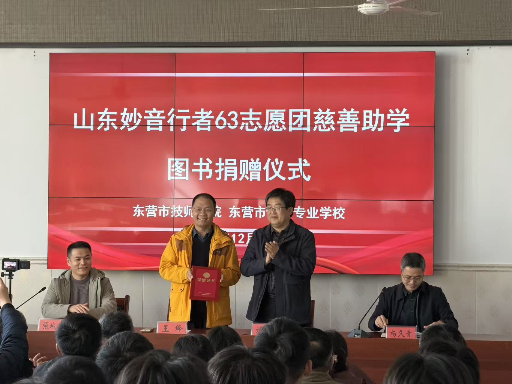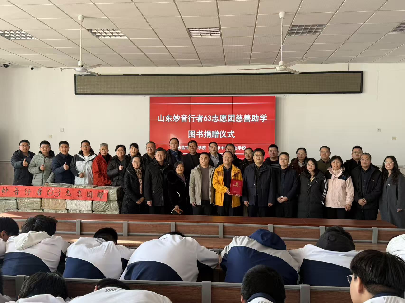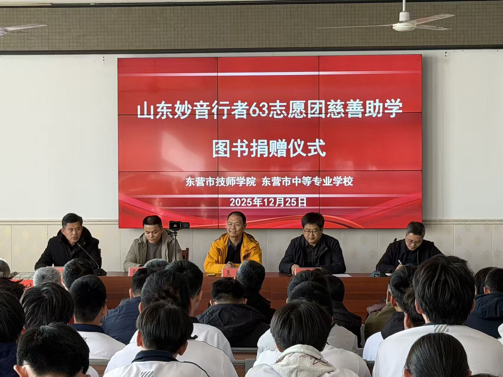 12月25日,“山东妙音行者63志愿团慈善助学”图书捐赠仪式在市中等专业技术学院交通工程系一楼阶梯教室温情启幕。山东妙音行者63志愿团代表王绎、张城晔,学院党委委员、党总支书记刘建强,教务处(图书馆)及交通工程系主要负责同志,与师生代表共同参与,以书香为媒,共话助学兴教之路。