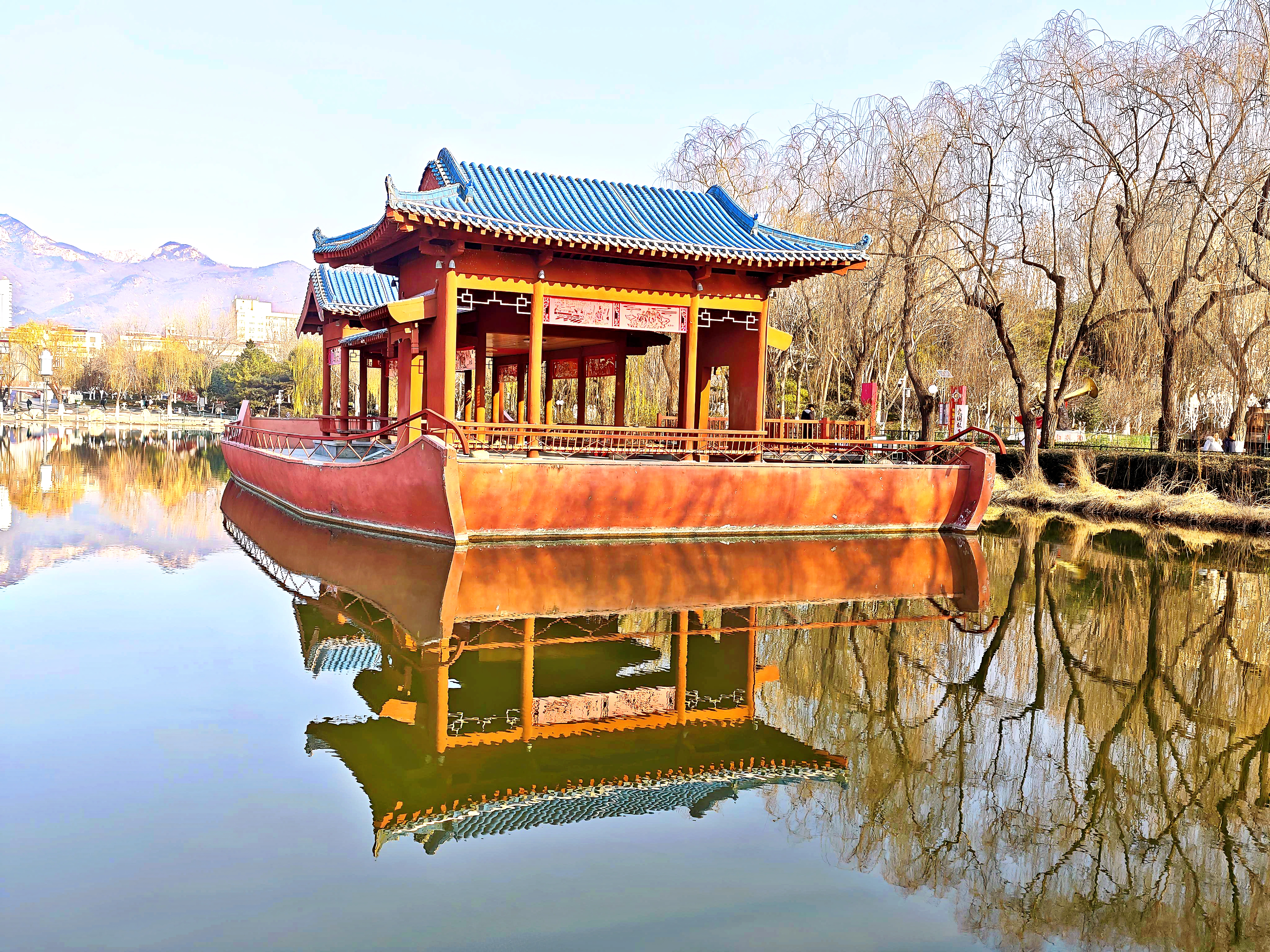 冬日里,漫步泰安市南湖公园,彰显初心使命的党史主题映入眼帘。听着“胜利的号角”,观瞻南湖“红船”,学习共产党人的“精神谱系”,穿梭于绿植虹桥之间,重温党史,铭记于心,提振精神,不忘过去,珍惜当下,共赴未来。祝福祖国繁荣昌盛,国泰民安。(泰山学院贺安栋拍摄)