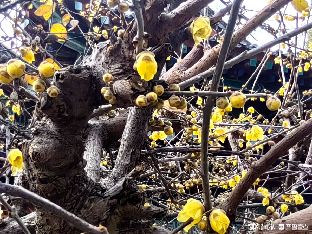 又闻寒冬腊梅香摄影 | 2025-12-28 11:18:16 微信扫码扫码下载客户端近日,济南大明湖尚泉尚水茶社院内的腊梅花开了。苍劲的老枝虬曲如铁,却缀满了嫩黄的花苞,有的半绽如铃,有的怒放似盏,金黄的花瓣凝着清冽的香,在料峭寒风里悠悠飘散。 王平 摄责任编辑:王媛