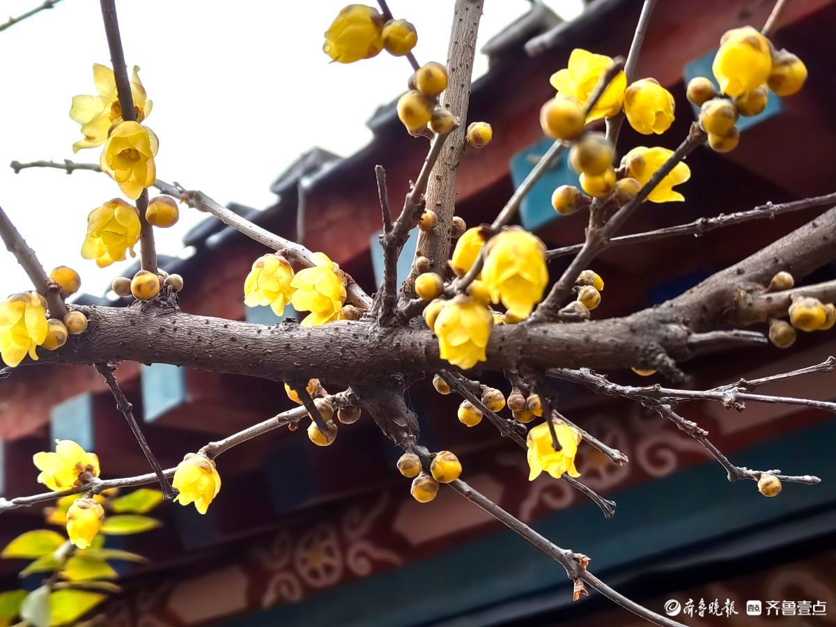 近日,济南大明湖尚泉尚水茶社院内的腊梅花开了。苍劲的老枝虬曲如铁,却缀满了嫩黄的花苞,有的半绽如铃,有的怒放似盏,金黄的花瓣凝着清冽的香,在料峭寒风里悠悠飘散。王平摄