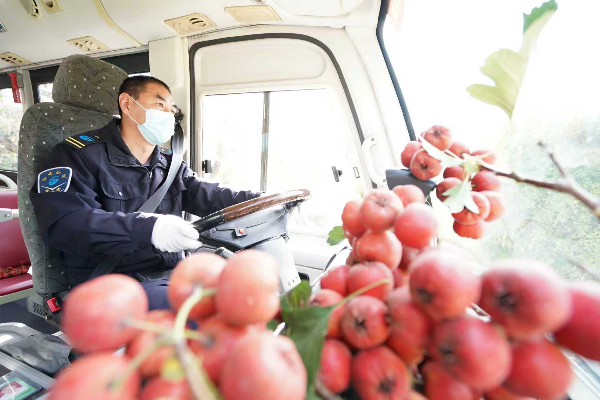 每天凌晨五点,当城市还在沉睡,仲宫公交场站已亮起灯火。K88路的首班车驾驶员仔细完成发车前的检查,随着一声清脆的提示音,公交车缓缓驶出站台。车厢里,弥漫着的不是汽油味,而是泥土的芬芳和各类果蔬的清香。村民们背着竹篓、提着篮子、拖着便携小推车,带着连夜采摘的还挂着露珠的樱桃、饱满的核桃、红艳的山楂、金黄的柿子,以及一把把翠绿的新鲜蔬菜、一篮篮散养的禽蛋,还有自家精心制作的豆腐、粉皮、金黄的小米,相互打着招呼,有序登上这趟最早的班车。