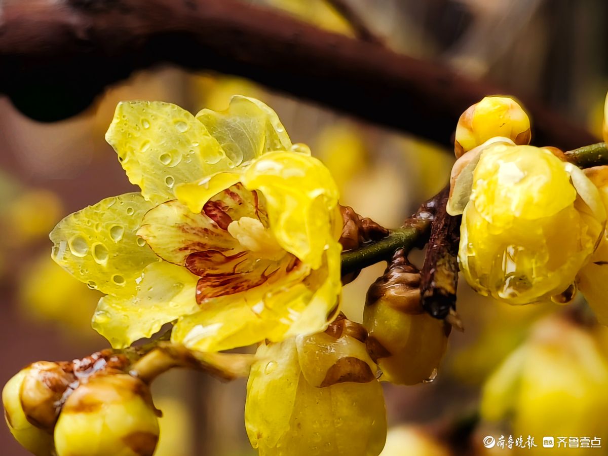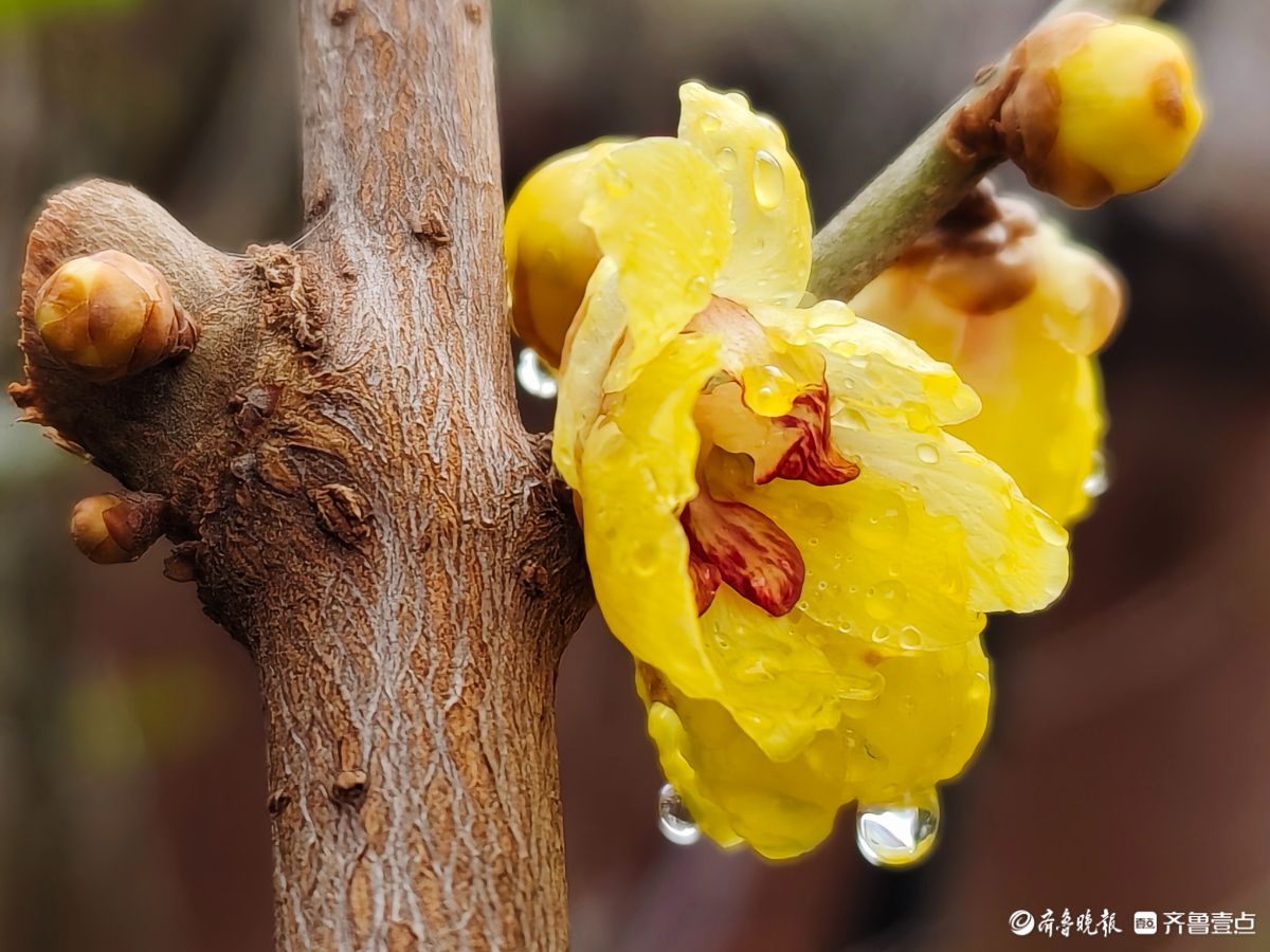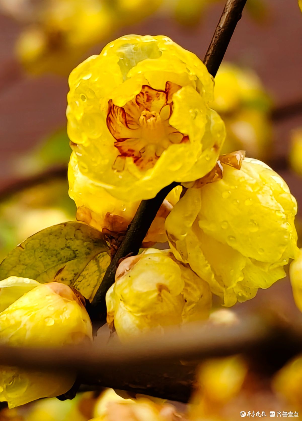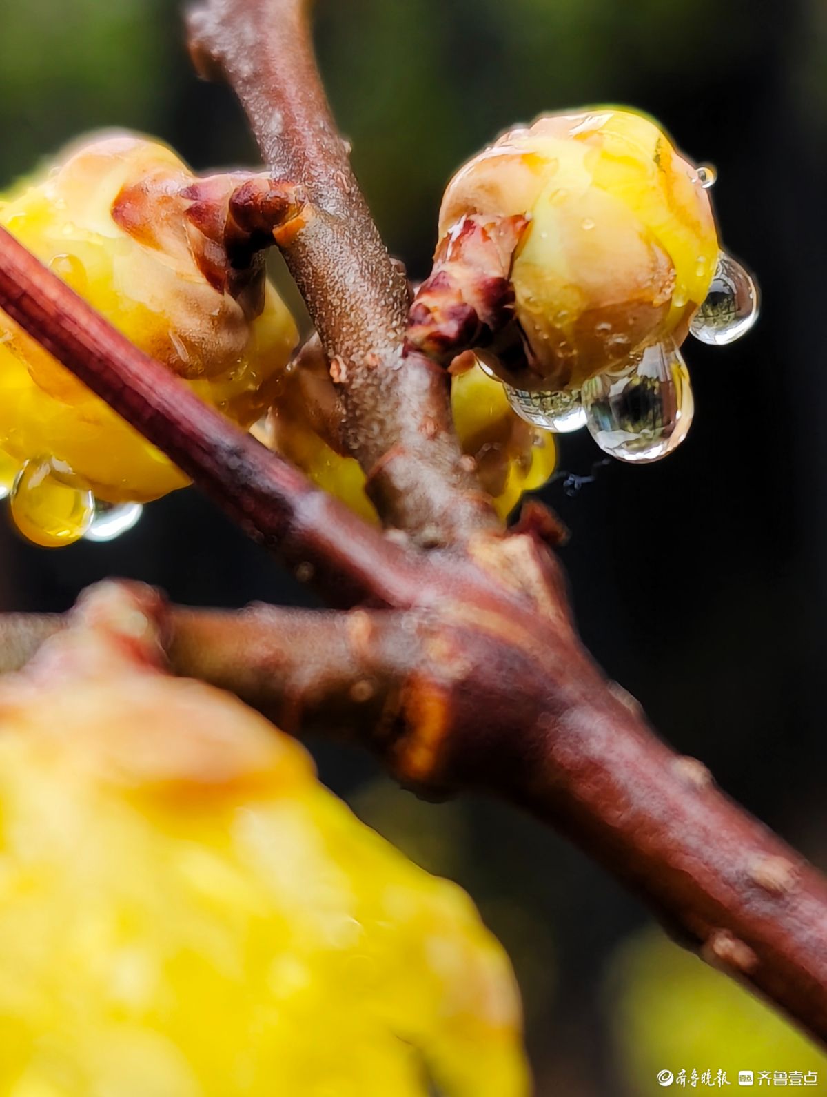 12月23日,寒风料峭,鲁南地区迎来一场冬雨。小区绿化园林中的腊梅经过冬雨洗礼,花儿更加娇艳。一个个小雨珠悬于花瓣边缘,折射出细碎光芒,仿佛为这寒冬中的精灵缀上钻石,焕发勃勃生机。高军摄
