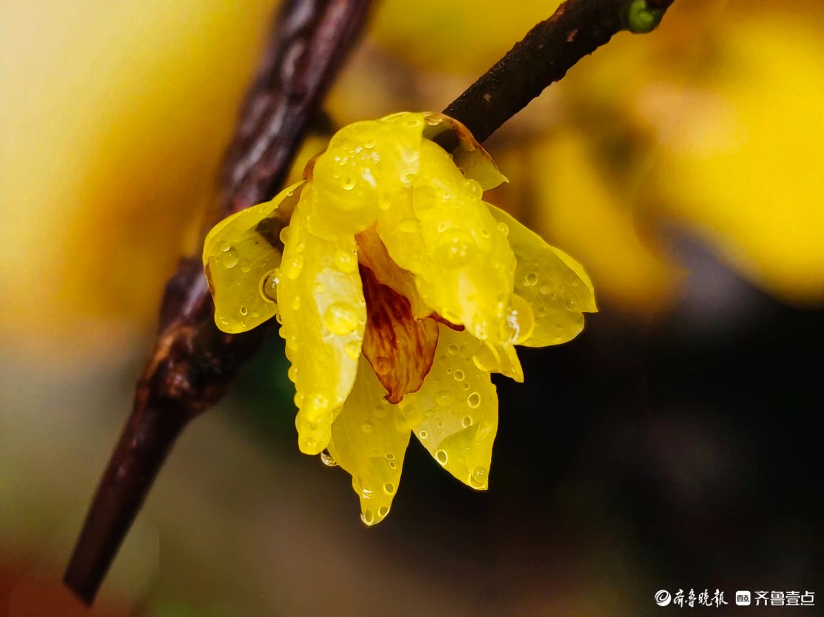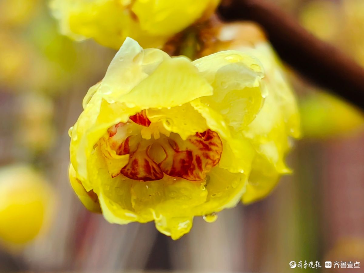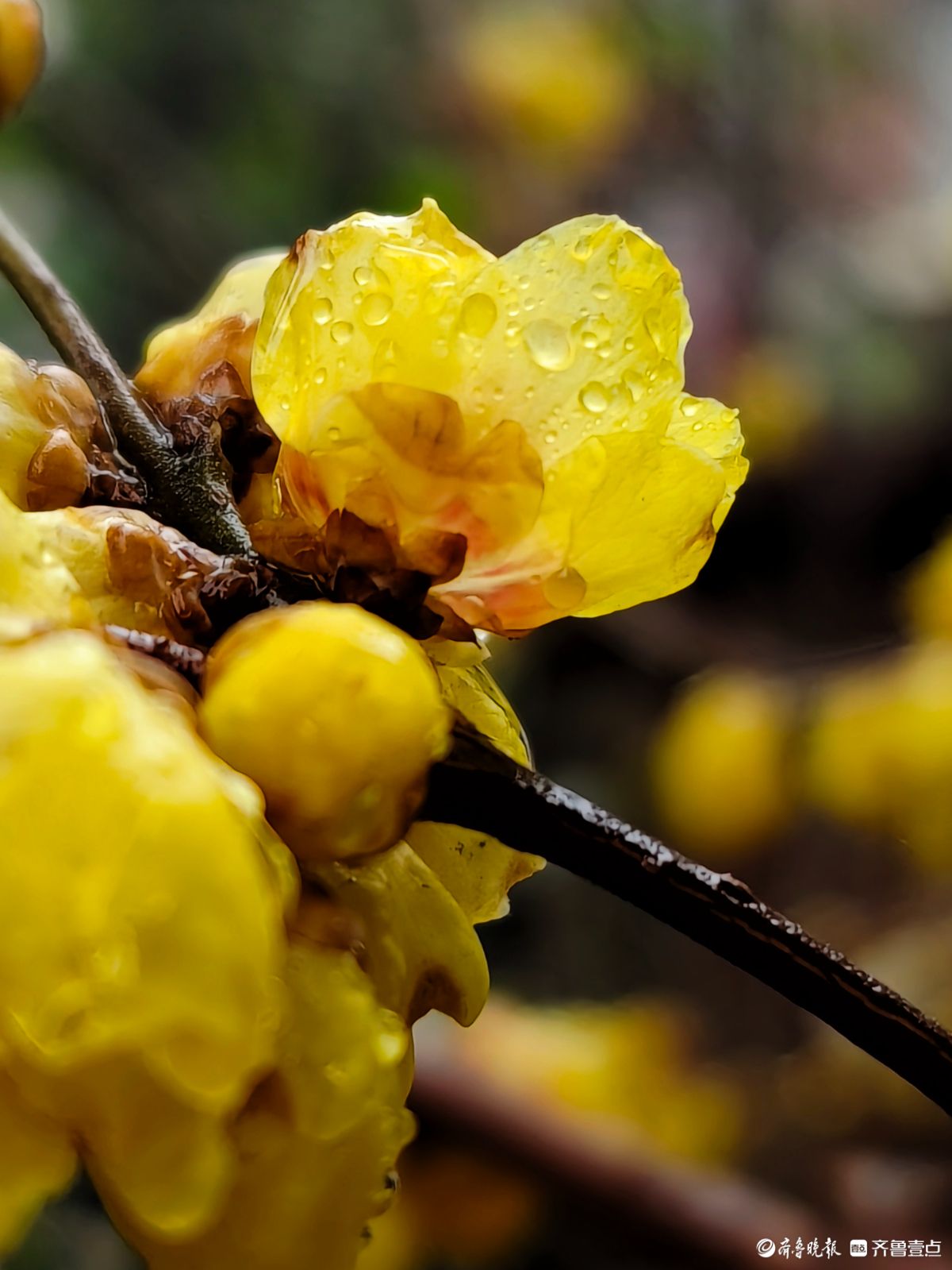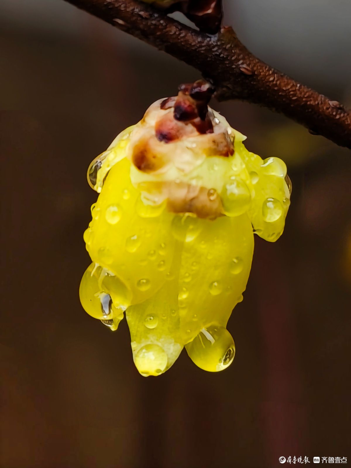 12月23日,寒风料峭,鲁南地区迎来一场冬雨。小区绿化园林中的腊梅经过冬雨洗礼,花儿更加娇艳。一个个小雨珠悬于花瓣边缘,折射出细碎光芒,仿佛为这寒冬中的精灵缀上钻石,焕发勃勃生机。高军摄