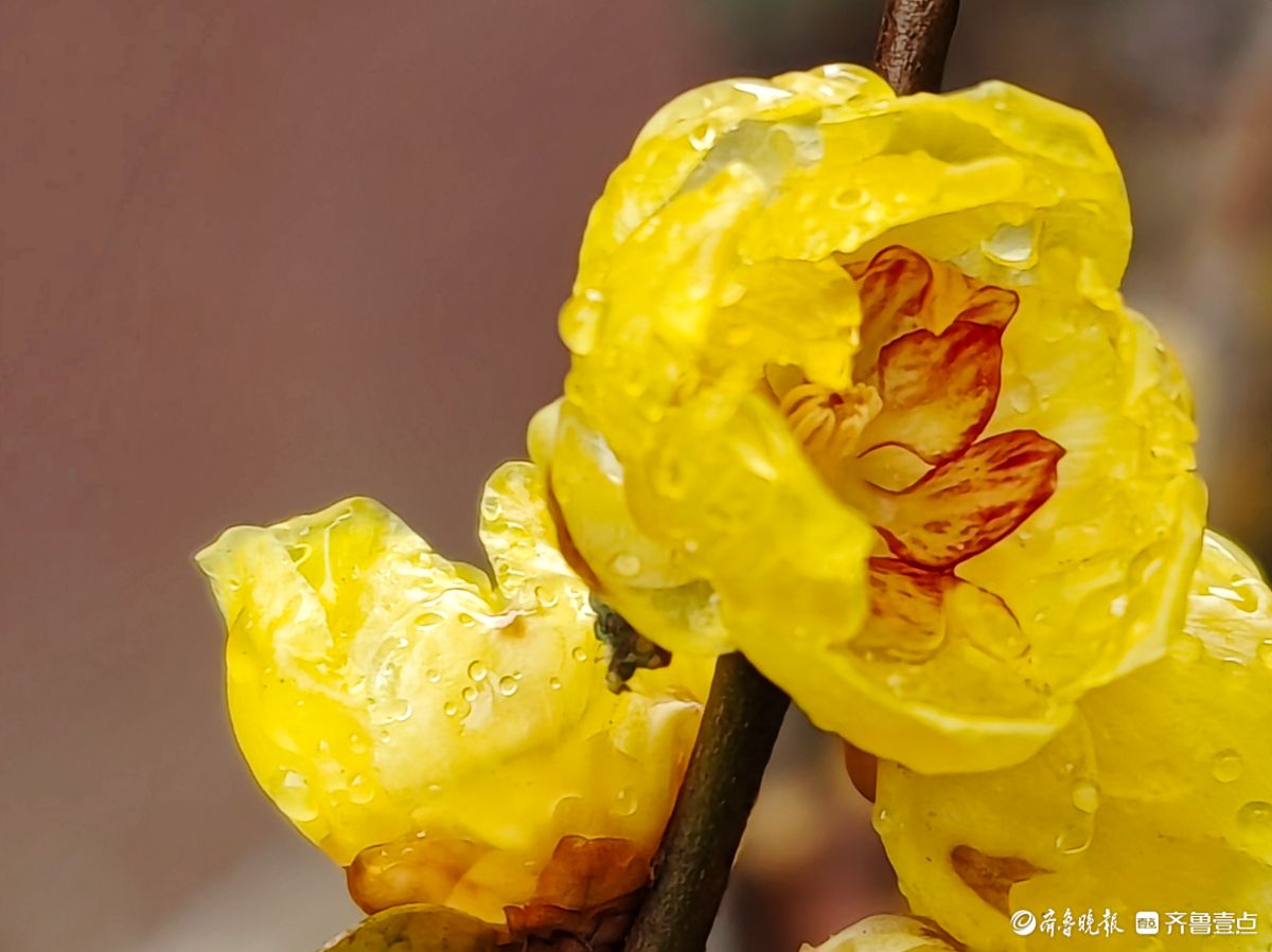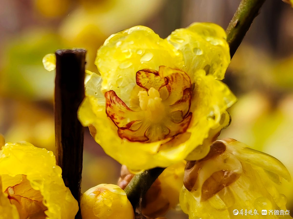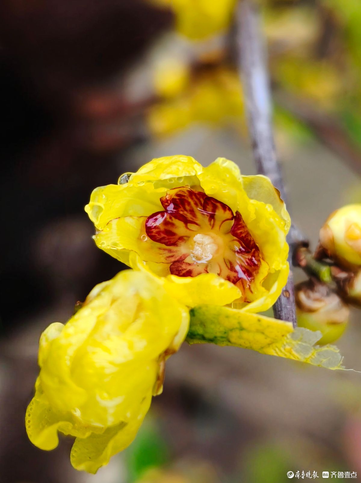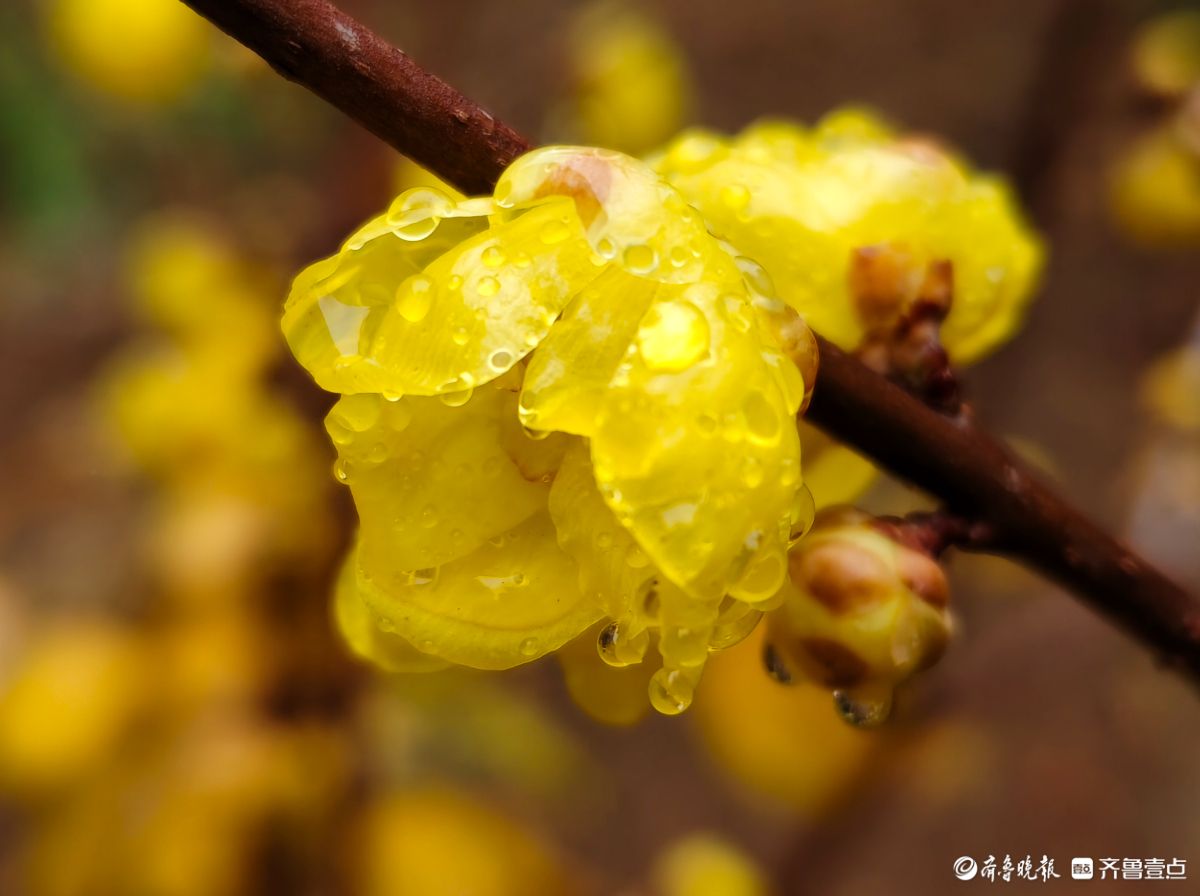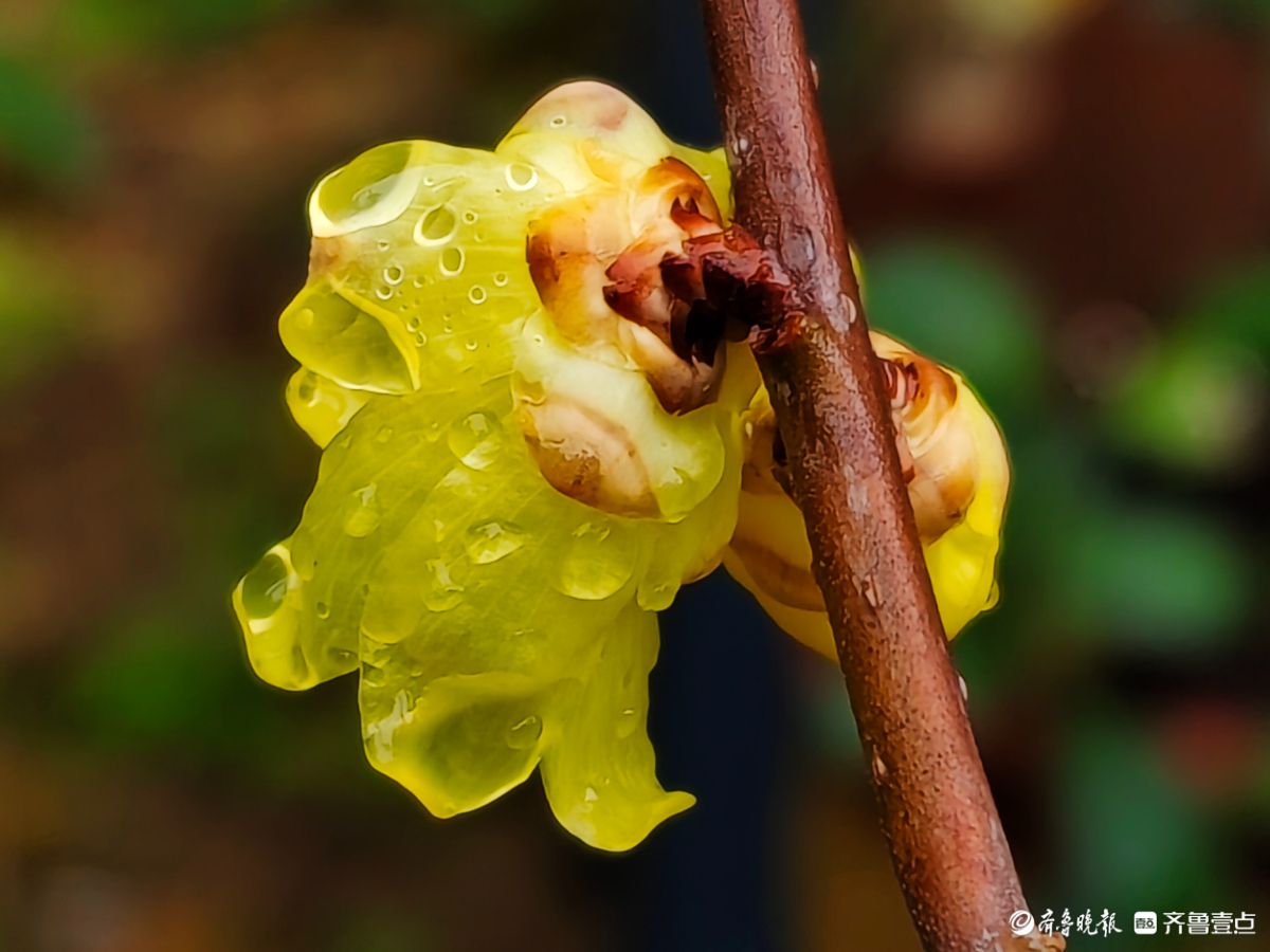 12月23日,寒风料峭,鲁南地区迎来一场冬雨。小区绿化园林中的腊梅经过冬雨洗礼,花儿更加娇艳。一个个小雨珠悬于花瓣边缘,折射出细碎光芒,仿佛为这寒冬中的精灵缀上钻石,焕发勃勃生机。高军摄