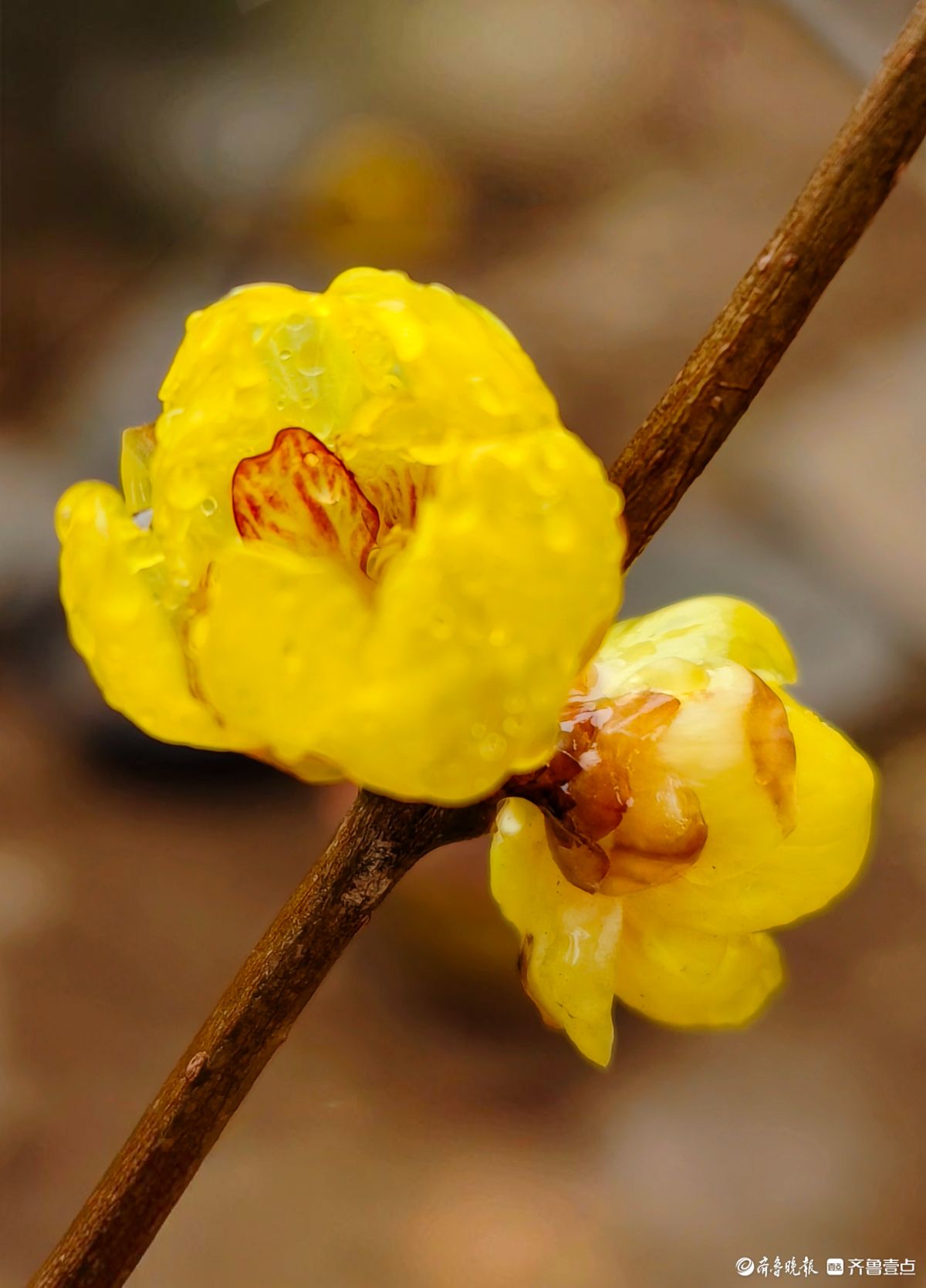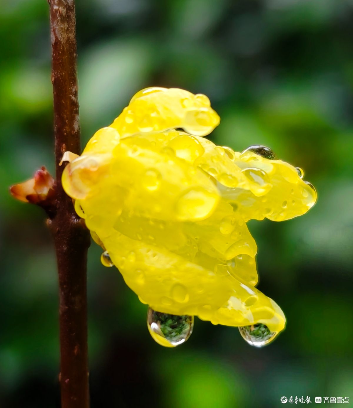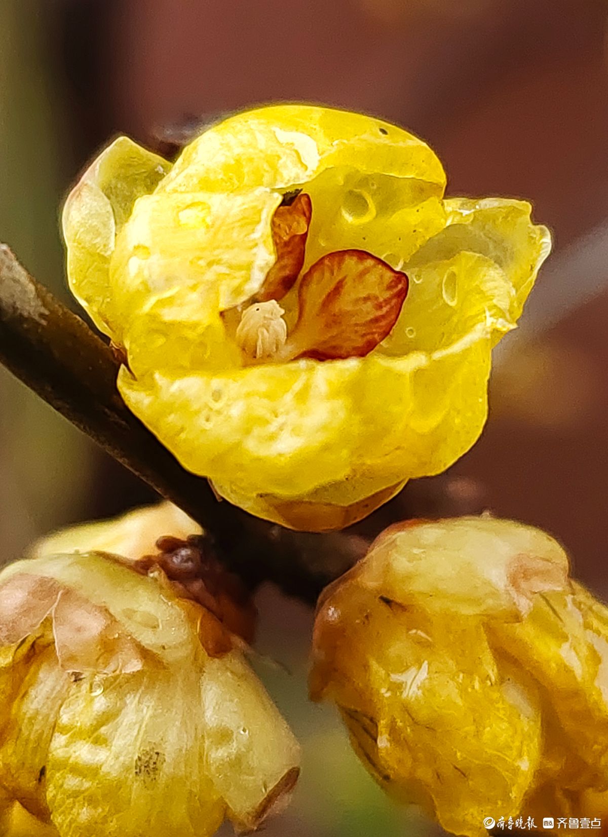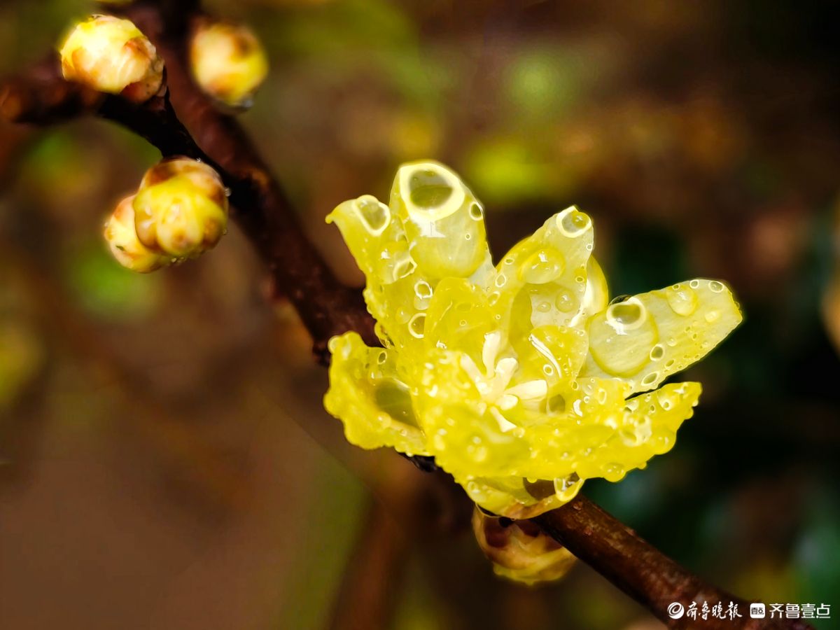 12月23日,寒风料峭,鲁南地区迎来一场冬雨。小区绿化园林中的腊梅经过冬雨洗礼,花儿更加娇艳。一个个小雨珠悬于花瓣边缘,折射出细碎光芒,仿佛为这寒冬中的精灵缀上钻石,焕发勃勃生机。高军摄