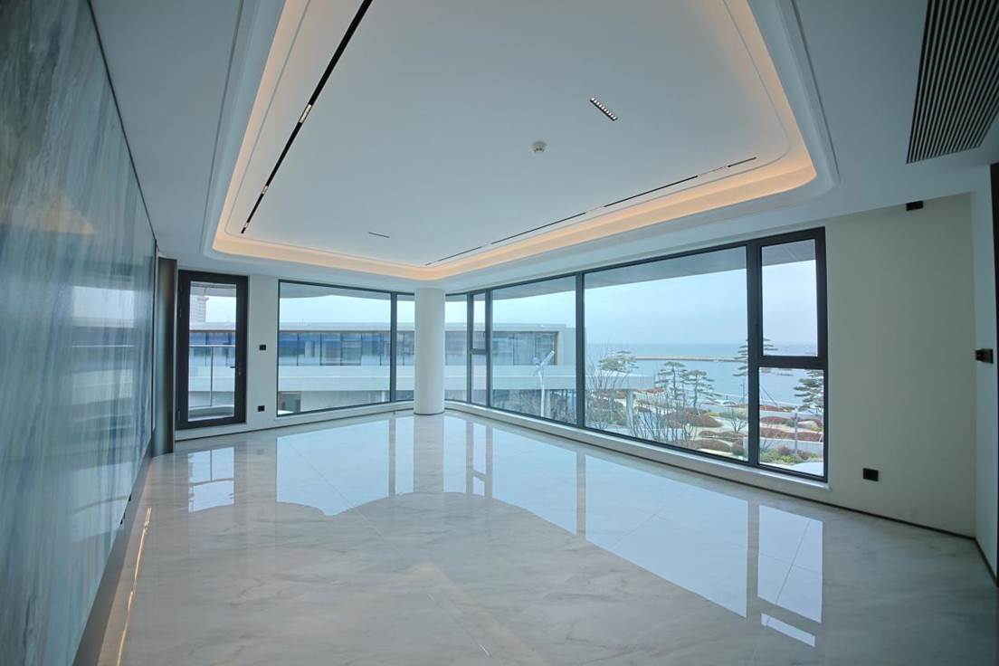 约7.5米开间的客厅,配合环绕式转角落地窗,将橘子海的晨昏变化,毫无保留地纳入日常画框。这里,海不再是远景,而是空间的“第四面墙”。
