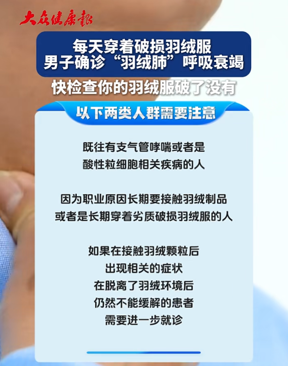 男子确诊“羽绒肺” 呼吸衰竭!医生提醒