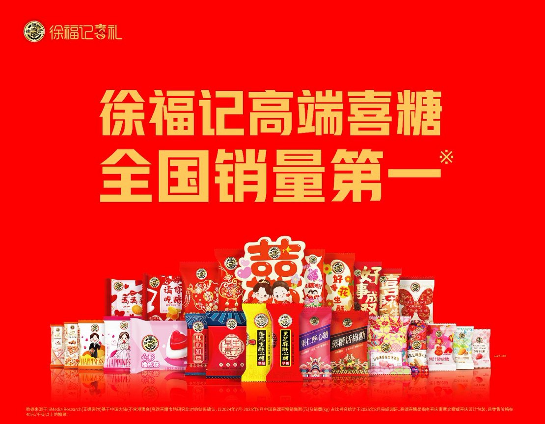 在品类创新上,徐福记突破传统喜糖局限,拓展果干软糖、咸风味饼干等多款新品,全方位满足新婚人群的多元消费需求。作为中国高端喜糖第一品牌,徐福记始终坚守全链路严苛品控标准,精选全球优质原料,打磨精湛制作工艺,依托CNAS认证检测中心为产品品质保驾护航,更以年均近2亿元的研发投入持续驱动产品创新升级。