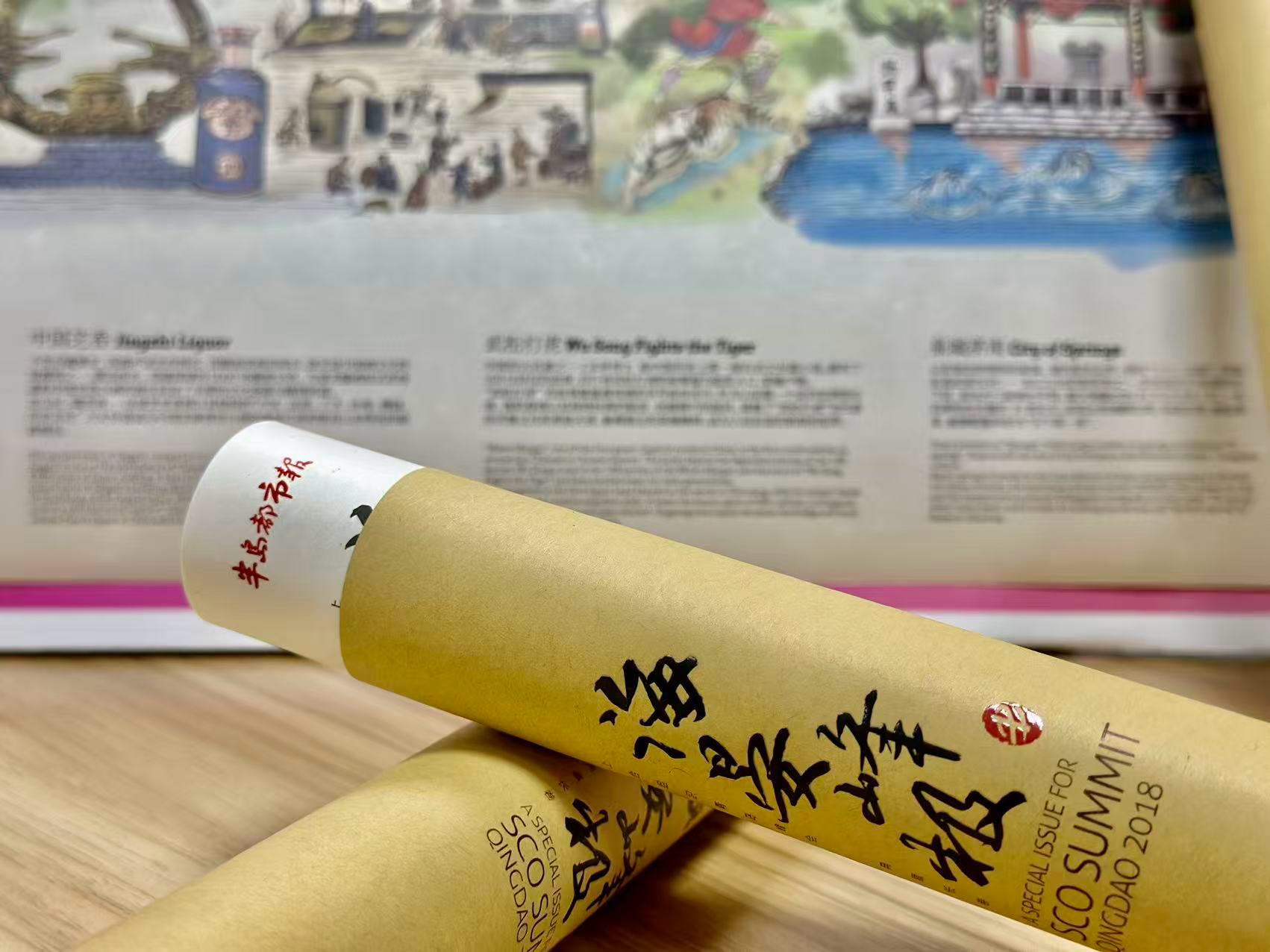半岛都市报推出的手绘长卷《海晏峰极》,由四位创意精英历时月余打造。全长2.018米,分“好客山东”“好品青岛”两大主题,浓缩山水圣人、城市地标等元素。以中国风卷轴呈现,入驻峰会相关酒店、航班等,成为城市伴手礼,既展现齐鲁文明与青岛风貌,更具极高收藏价值。