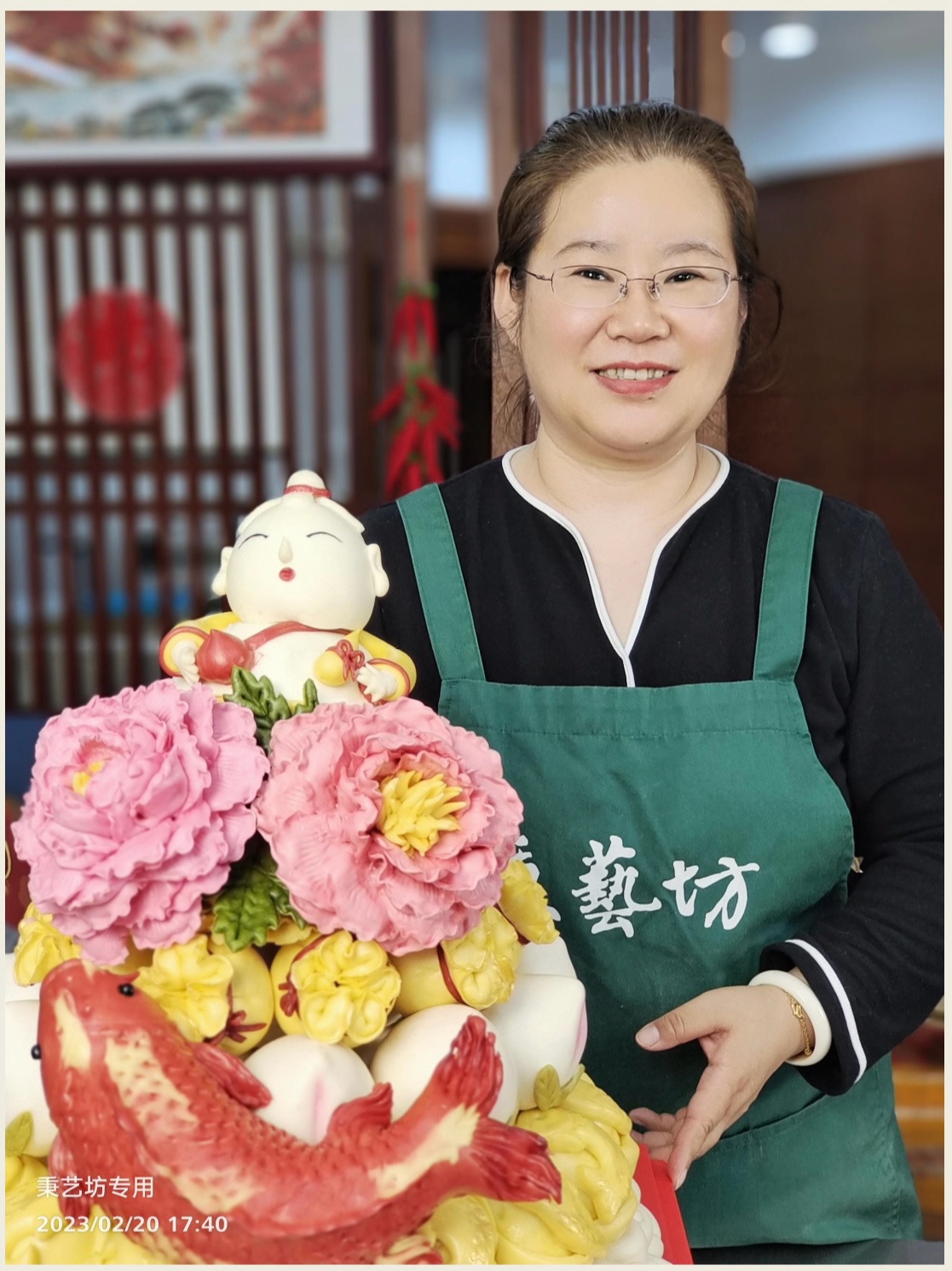 蔡秉芬还创立了“秉艺坊”品牌,建成规模化工厂,成为盒马鲜生最大面食供应商,还推出富硒馒头等创新品类。受聘为山东省女工工匠培训讲师,开展多地非遗培训,推动胶东花饽饽走进社区、校园,获评“世界中餐推广大使”“山东省百姓学习之星”等称号。蔡秉芬日前赴法国参加的世界大赛其面塑作品“东方醒狮”及花饽饽作品“五福祥瑞”,双双获得特金奖。
