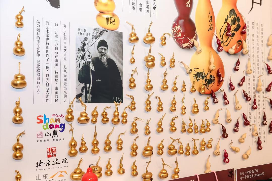 山东省文化和旅游厅党组书记、厅长喻剑南在致辞中,提到山东非遗与“学我者生——齐白石与山东弟子”特展相互激发。于是,展览中我们看到,山东与风筝、琉璃、葫芦……题材有关的这些非遗产品,成为本次特展践行文化“双创”的兴奋点,书画艺术加非遗加文创,成为这个展览的一大特色。