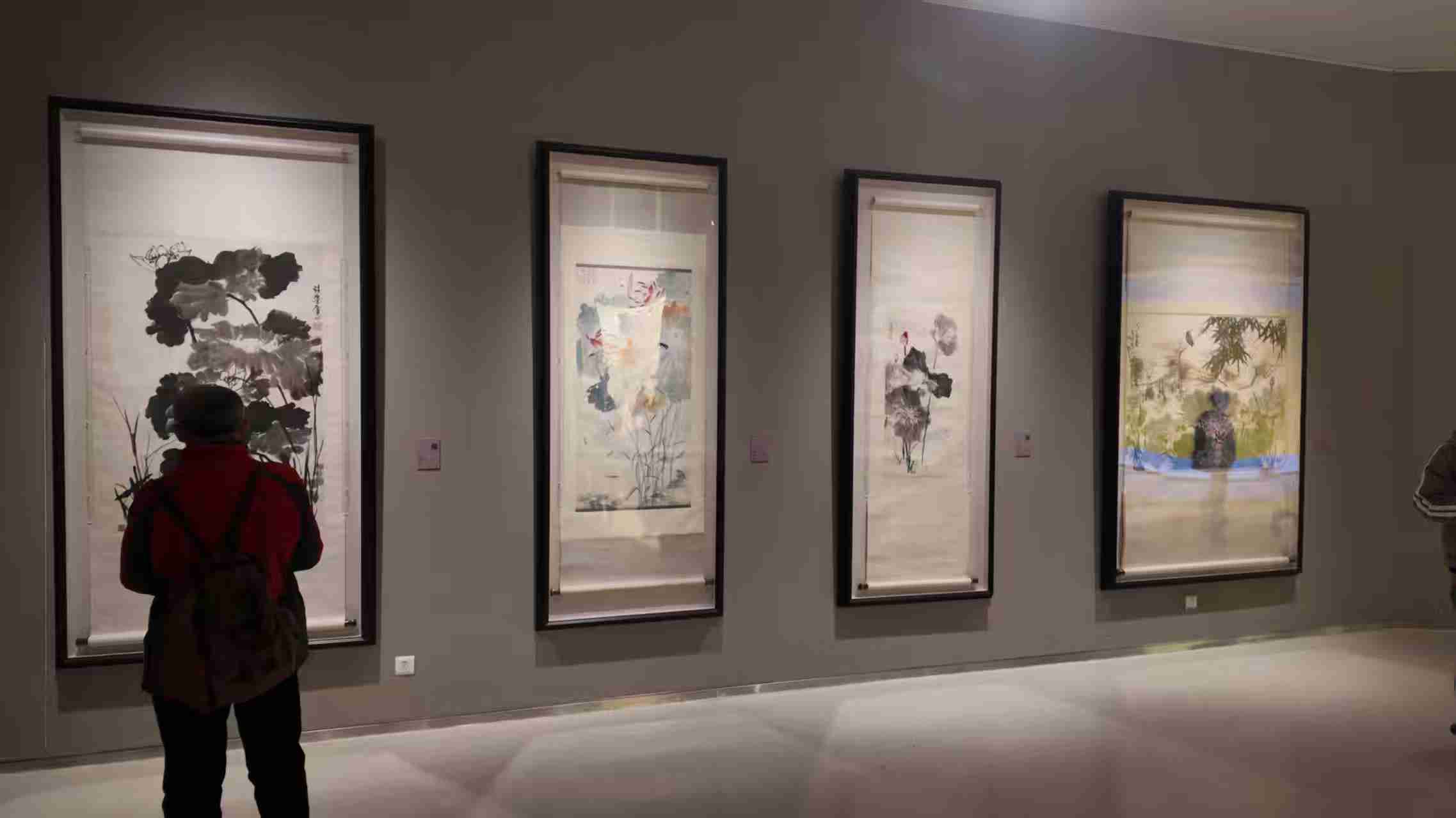围绕齐白石艺术理念“学我者生,似我者死”,山东美术馆在历时一年的策展中,精心筹划,齐鲁壹点记者看到,同一面墙壁上,挂着齐白石与4位著名徒弟画的荷花,师徒5人5幅作品都是精品佳作,却效果迥异。旁边一面墙主题是梅花,有红梅、白梅、墨梅……技法上有工笔、大、小写意之分,出来的效果完全不同,给观众以震撼和启迪。