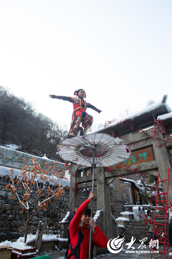 本次活动以“踏雪・寻梅”为主线,打造三大特色场景,从墙垣红梅初探,到雪落红墙寻幽,再到庭院朱门赏梅,艺术造景诚意满满,既赋新春浪漫寓意,更成绝佳拍照打卡点。活动以古村街巷“百戏杂艺”开场,吴桥杂技经典绝活轮番上演,顶缸、转碟、弹球等重现市井欢腾,尽显民间技艺魅力。