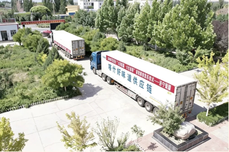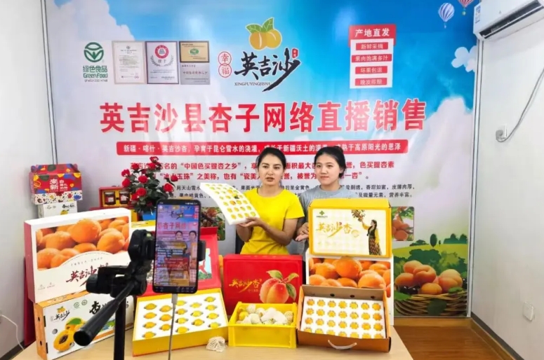 “产得出”更要“卖得好”。济宁援疆指挥部以“大仓东移”“喀什好味道”市场援疆工程为抓手,构建“线上+线下”“前方+后方”“内销+外销”的多元化销售网络,打通产业发展“最后一公里”。线下深耕山东市场,在济宁、济南、青岛等地设立43个农副产品销售专柜,建成英吉沙县会客厅和“幸福英吉沙”线下体验店,每年举办“幸福英吉沙·杏好遇见你”“丰收金秋·消费助农”等公益活动6场以上,带动销售英吉沙杏、干果、特色蔬菜等农产品8000余吨。线上搭建电商产业园,与全县100余个村级电商网点、合作社建立三级联动机制,开展直播带货、短视频推广等活动,线上销售额持续攀升,累计销售各类农副产品120余吨。同时,对接济宁城投、爱客多连锁超市等企业,推动英吉沙特色产品进商超、进机关、进社区、进企业,形成“产运销”一体化闭环,让戈壁果蔬、牛仔服饰等产品走出新疆、走向全国,实现“产销两旺”的良性循环,让产业发展成果真正惠及各族群众。
