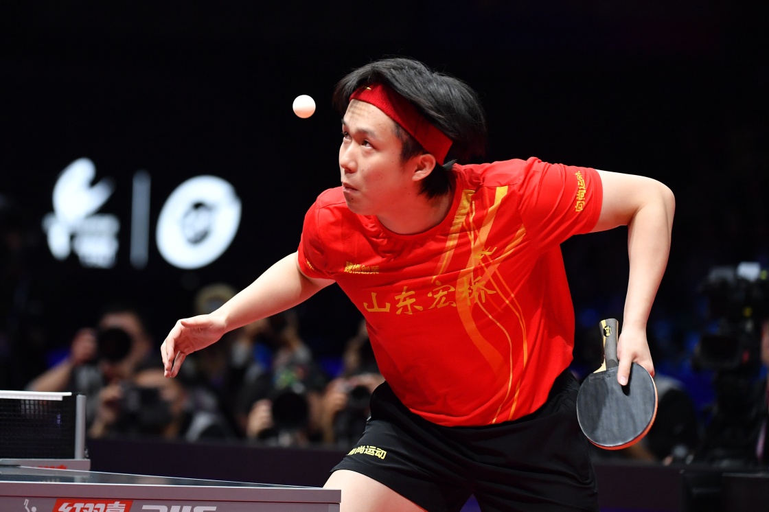 12月27日,山东魏桥·向尚运动队选手王楚钦在单打比赛中发球。新华社