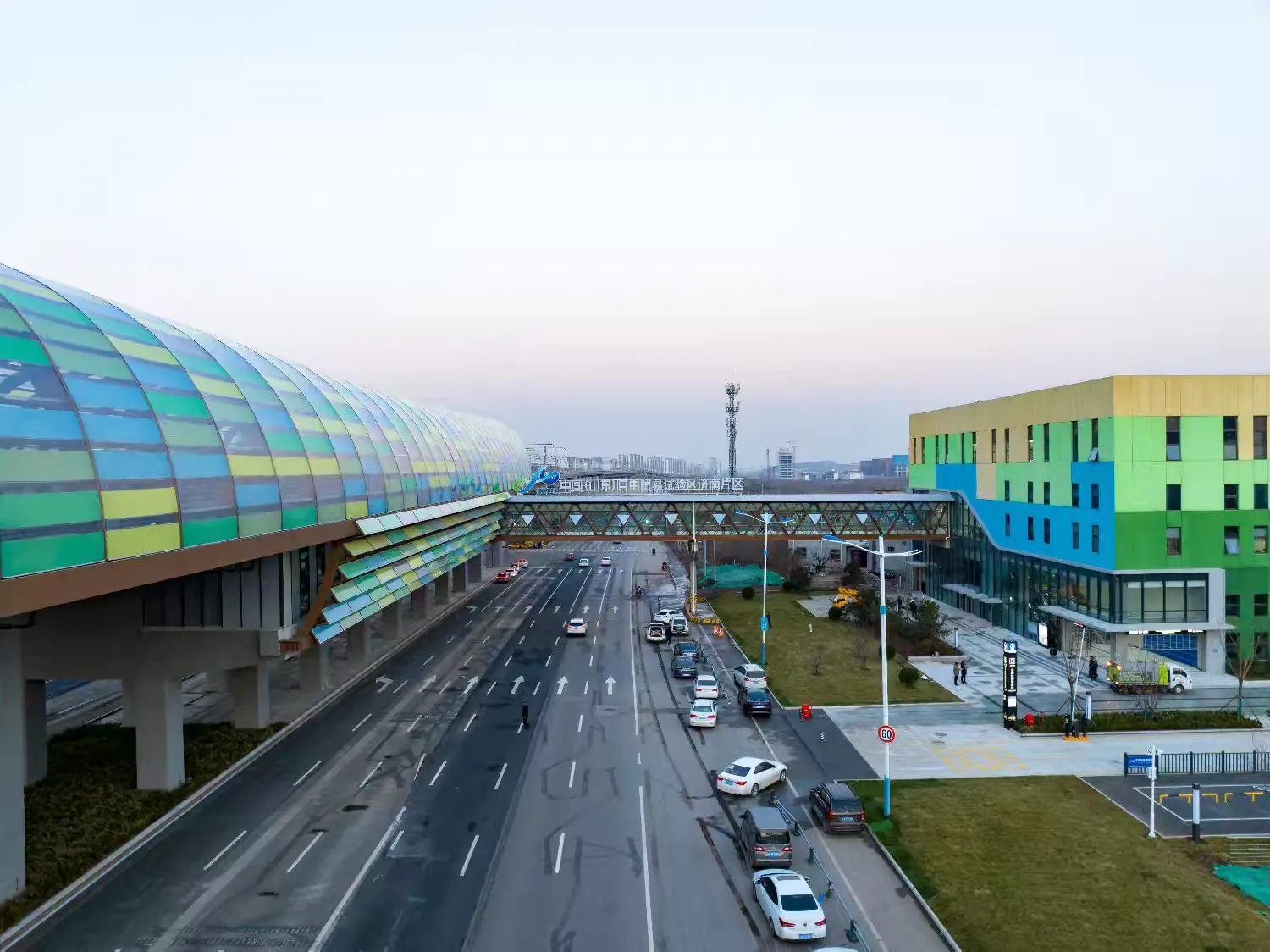 章丘圣井立交桥西南侧的山大龙山站,则采用“站城一体”设计理念,与未来商业开发相结合,是一次TOD新模式的有力探索。