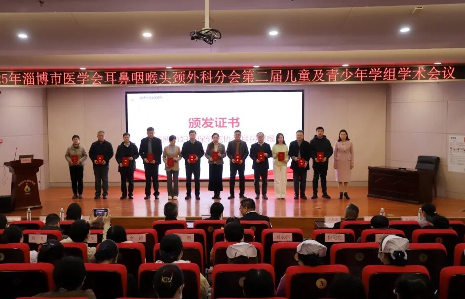 李冬梅向淄博市妇幼保健协会耳鼻咽喉疾病防治专业委员会“科普专家”代表颁发了证书。