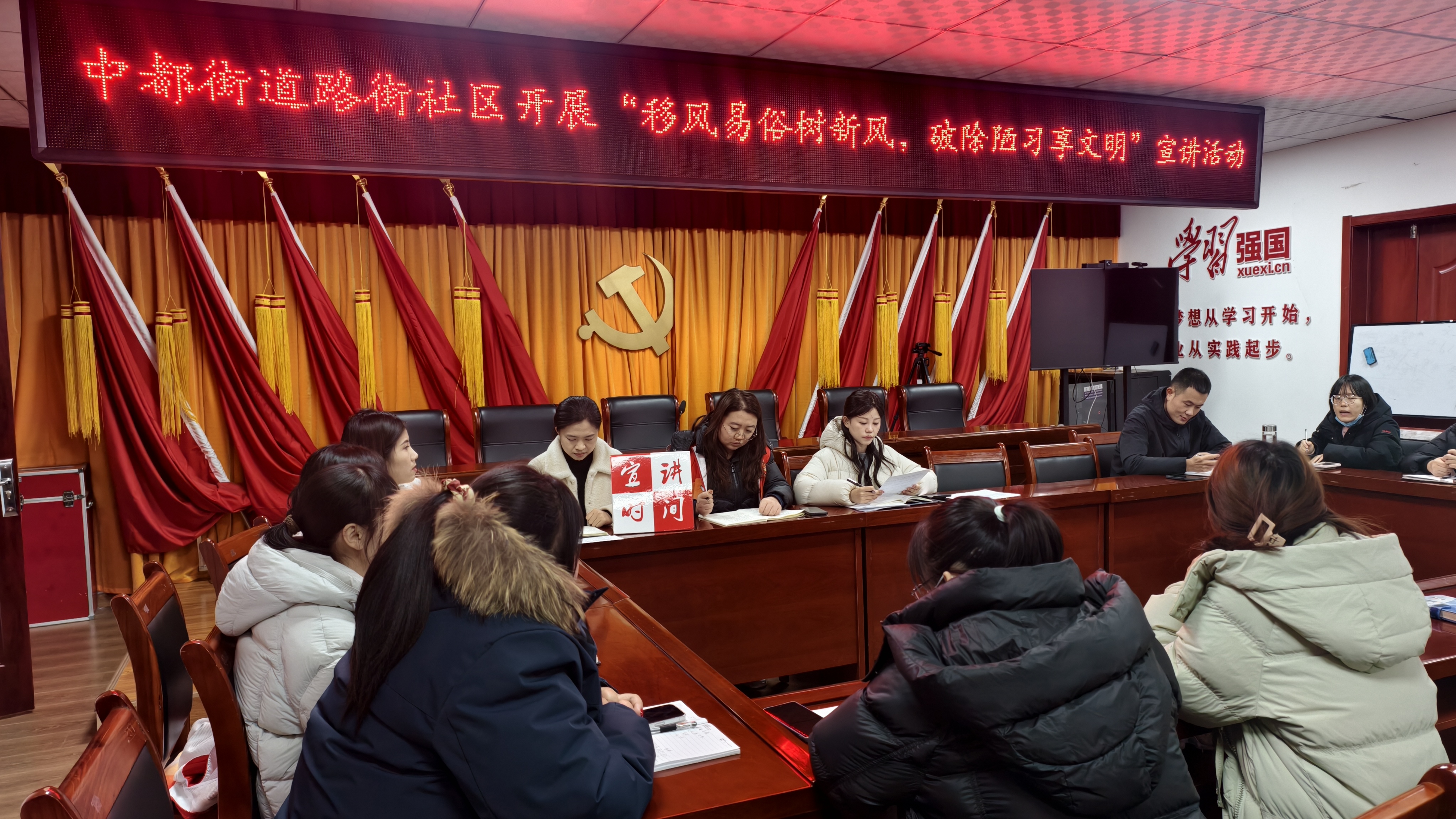 为进一步弘扬文明新风,破除陈规陋习,营造祥和文明的节日氛围,近日,中都街道路街社区组织开展“移风易俗树新风,破除陋习享文明”主题宣讲活动。