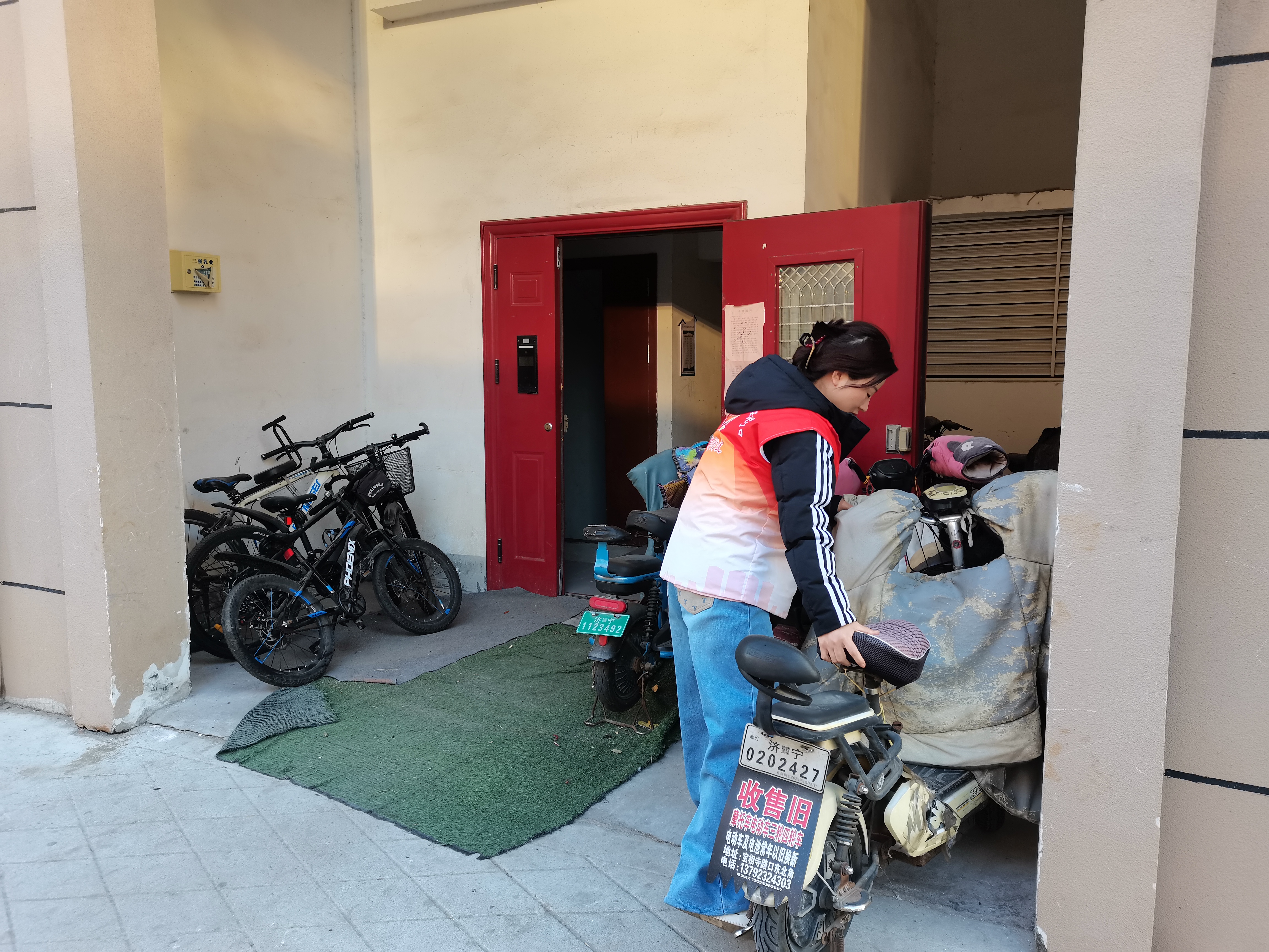 社区工作人员与志愿者组成的整治队伍,逐一对小区重点区域排查:对违规停放的电动车,现场协助车主移至小区划定的停车区;对长期无人认领的废弃车辆,登记后统一清运;同时在楼栋入口、电梯间张贴《规范停车告知书》,结合案例向居民讲解违规停车的安全风险。