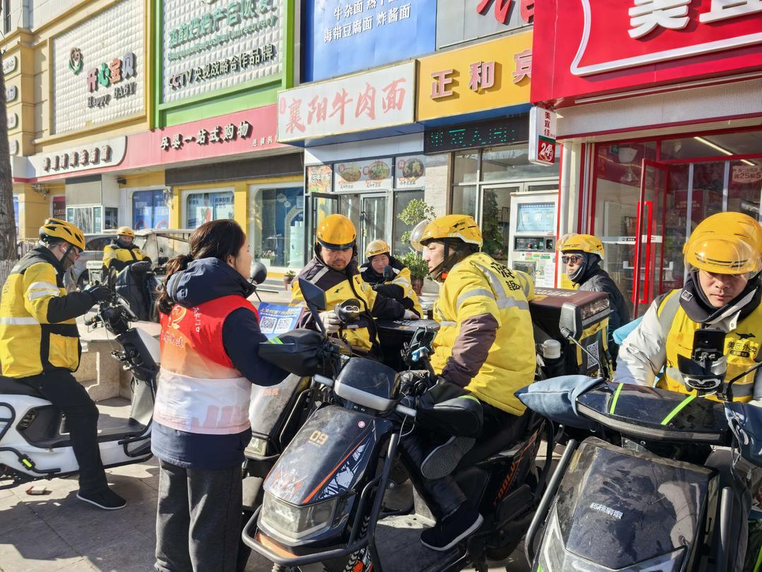 冬日暖阳洒满街巷,中都街道南门社区商圈门前的取餐点格外热闹。近日,南门社区组织志愿者在这里开展“人社政策进新业”主题宣传活动,将工伤保险、灵活就业社保等实用政策“打包”送到外卖小哥手中。